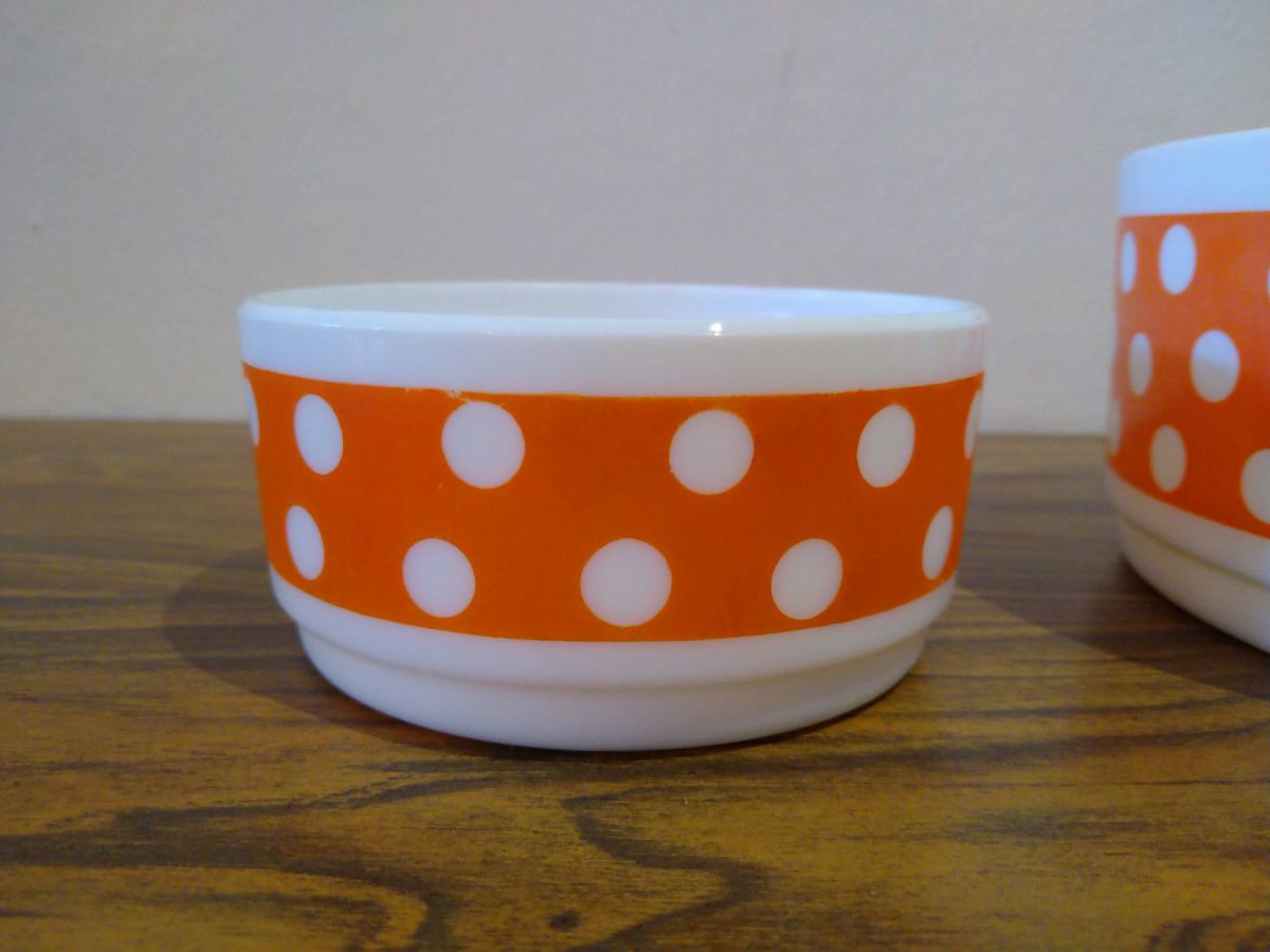 Lot Arcopal Polka Orange, Vaisselle typique des années 70 , en opaline Blanc composé d'un