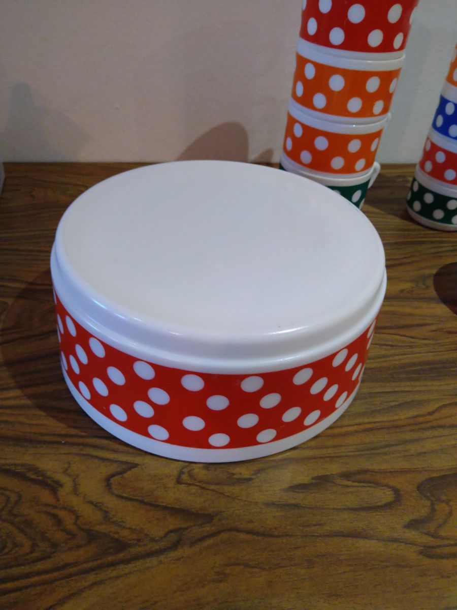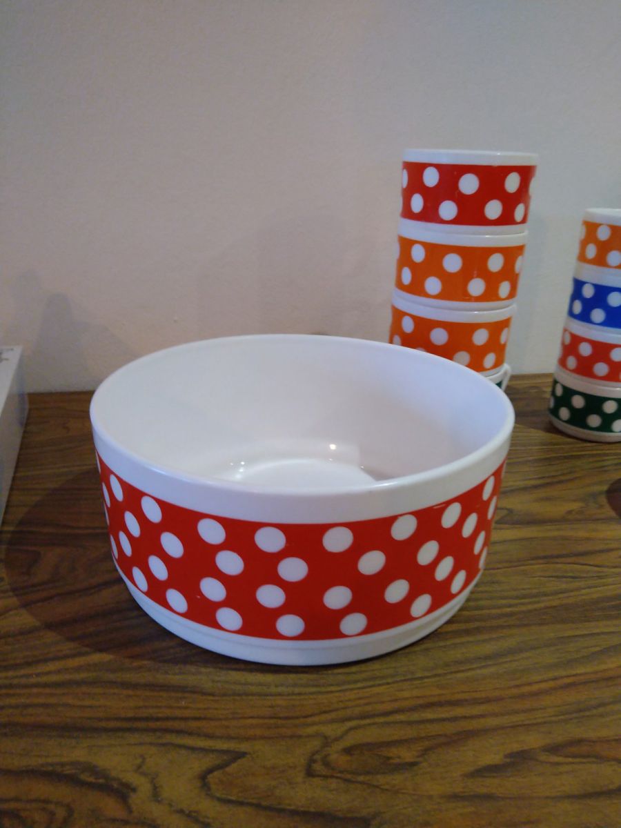 Saladier arcopal Polka rouge grand bol en verre rouge à pois blancs vintage années 70