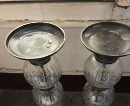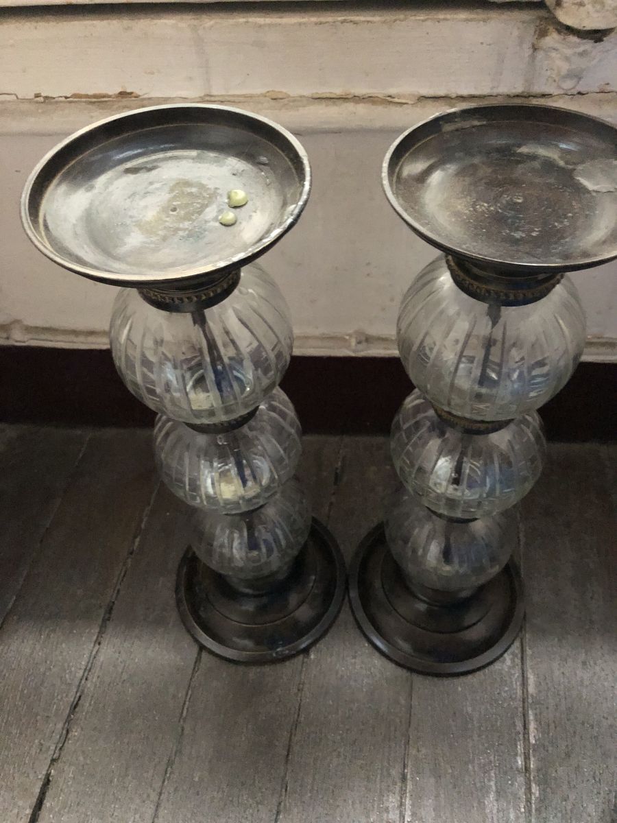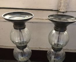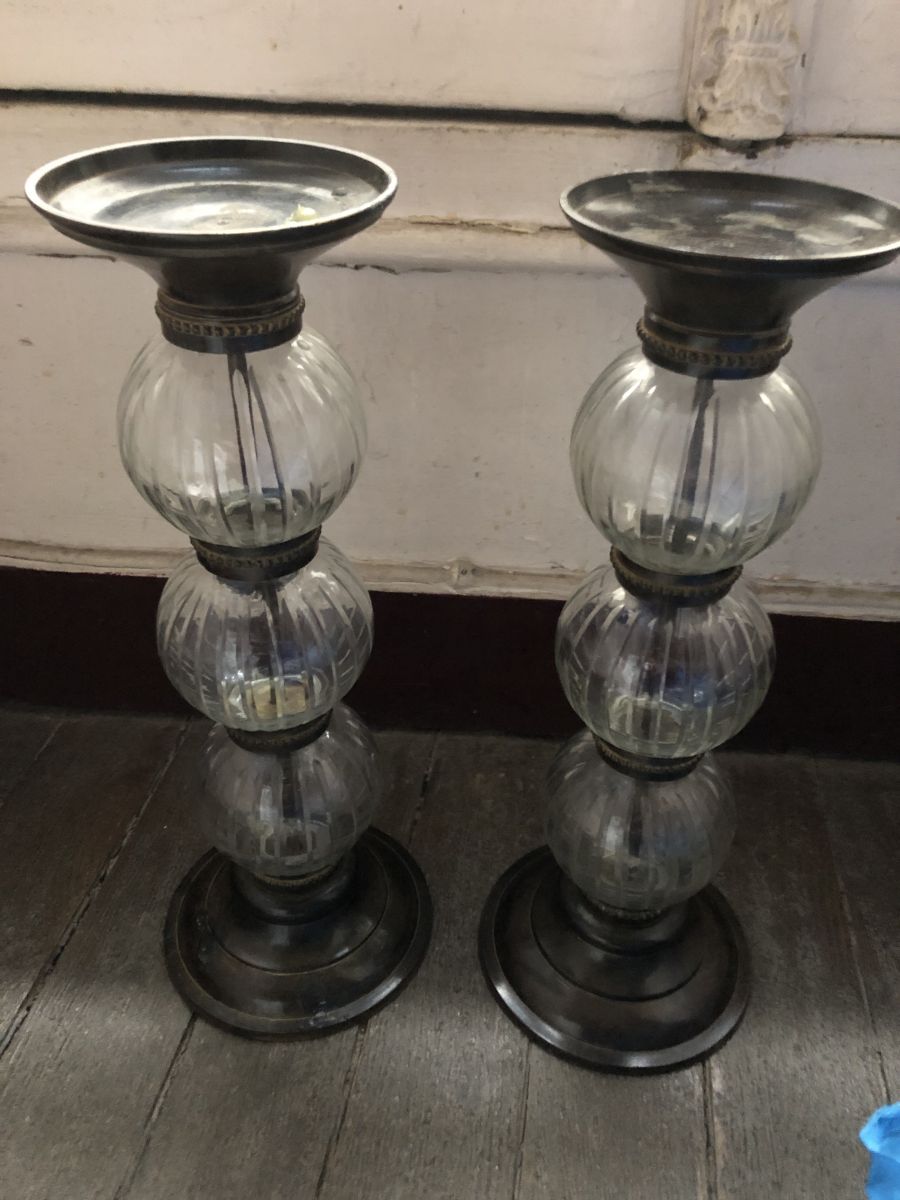 paire de bougeoirs laiton et verre
