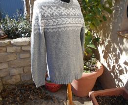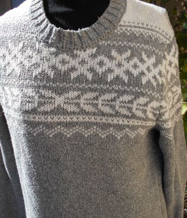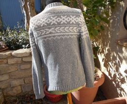PULL NOEL OU NORVEGIEN VINTAGE T 42 MIXTE GRIS PALE ET BLANC
