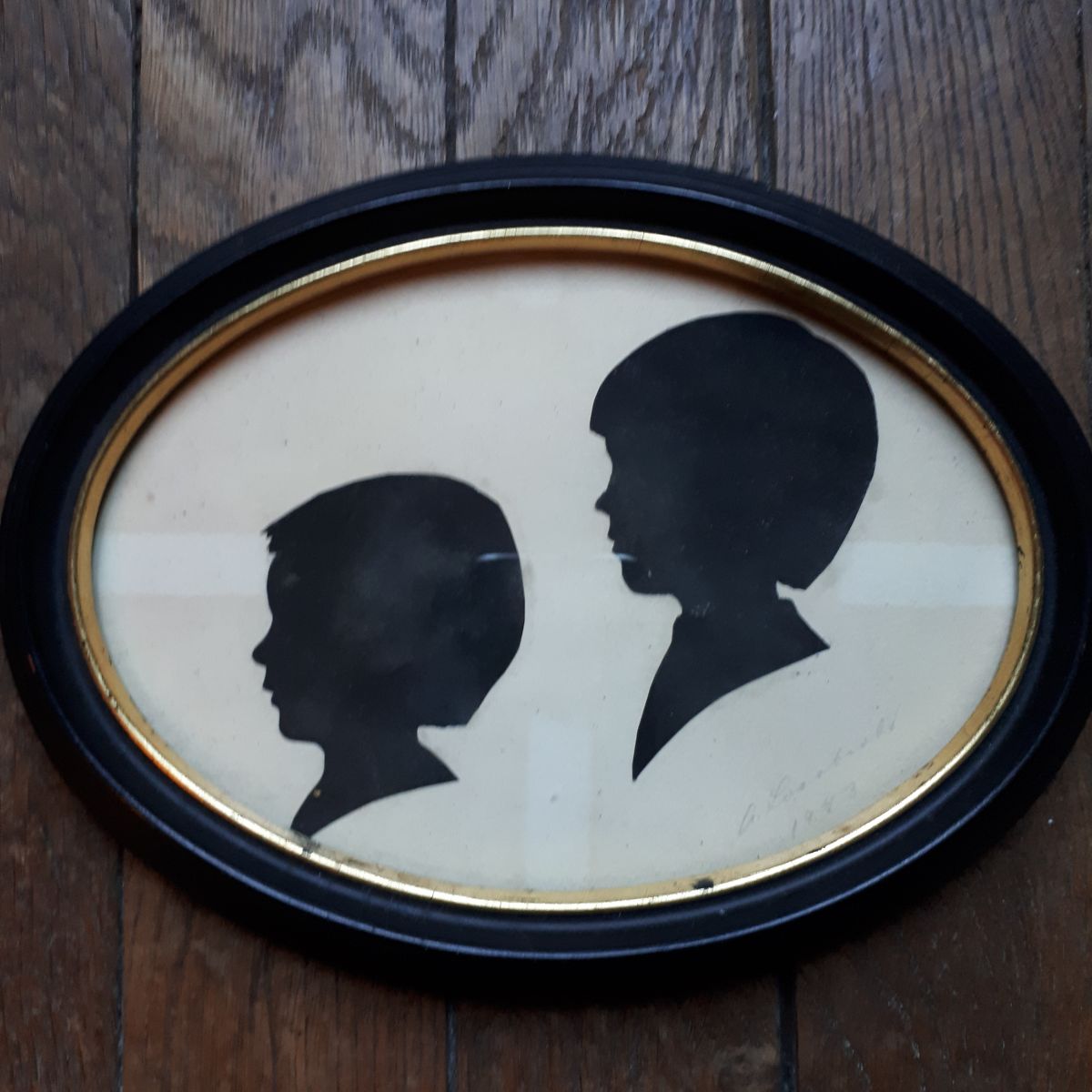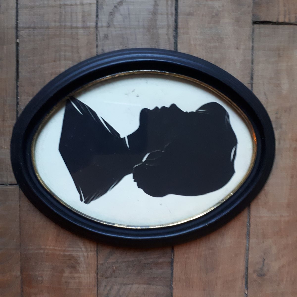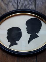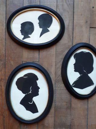 Lot de 3 charmants cadres silhouettes découpées datant certainement des années 60. Les cadres sont en bois noir d'origine avec un filet de doré.