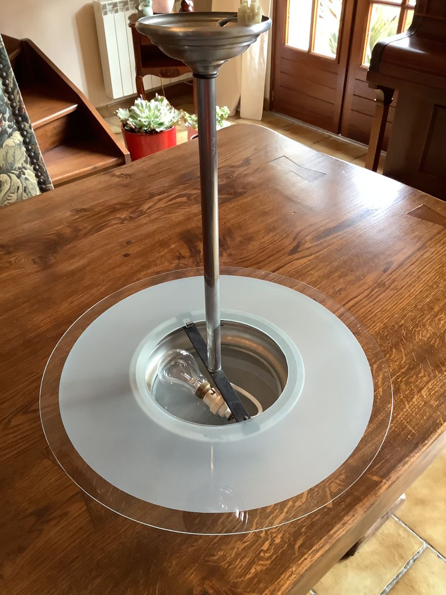 Bonjour,pourriez-vous préciser ce que vous sous entendez par "état moyen"? est-ce que le lustre fonctionne bien?, est-ce qu'il y a un coup sur le verre?