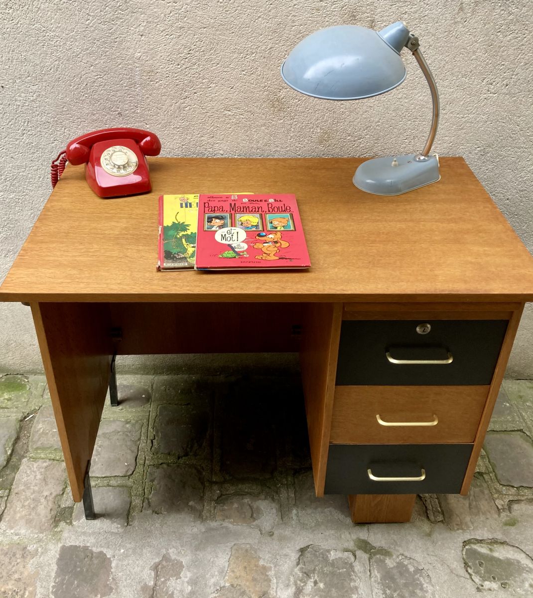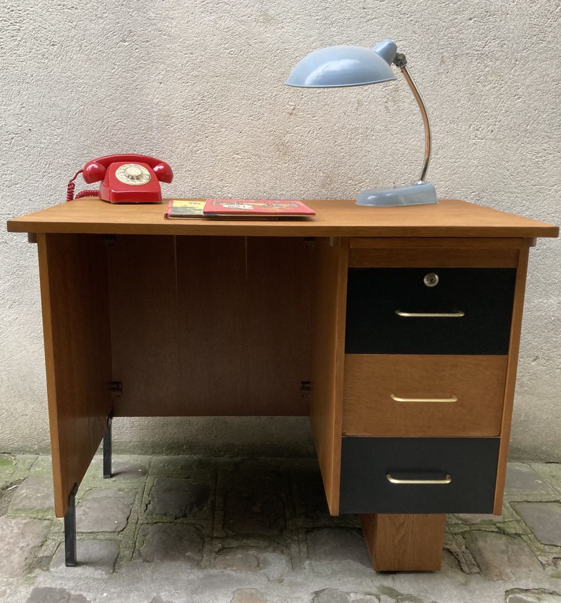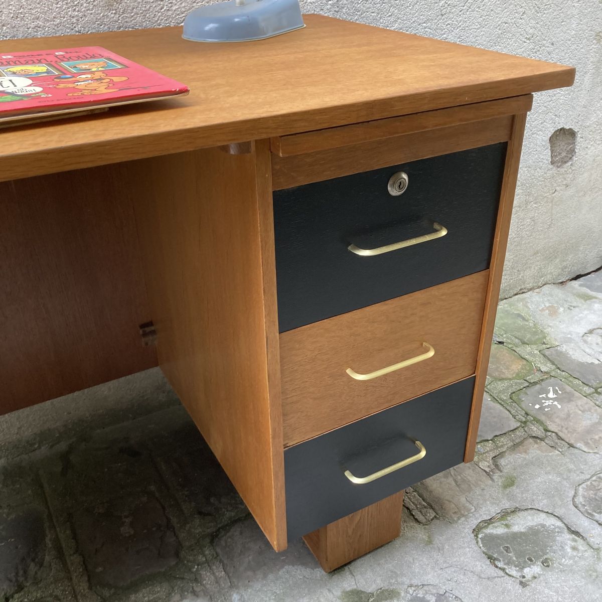Le bureau a été restauré et 2 tiroirs ont été peint en noir pour lui donner du caractère.