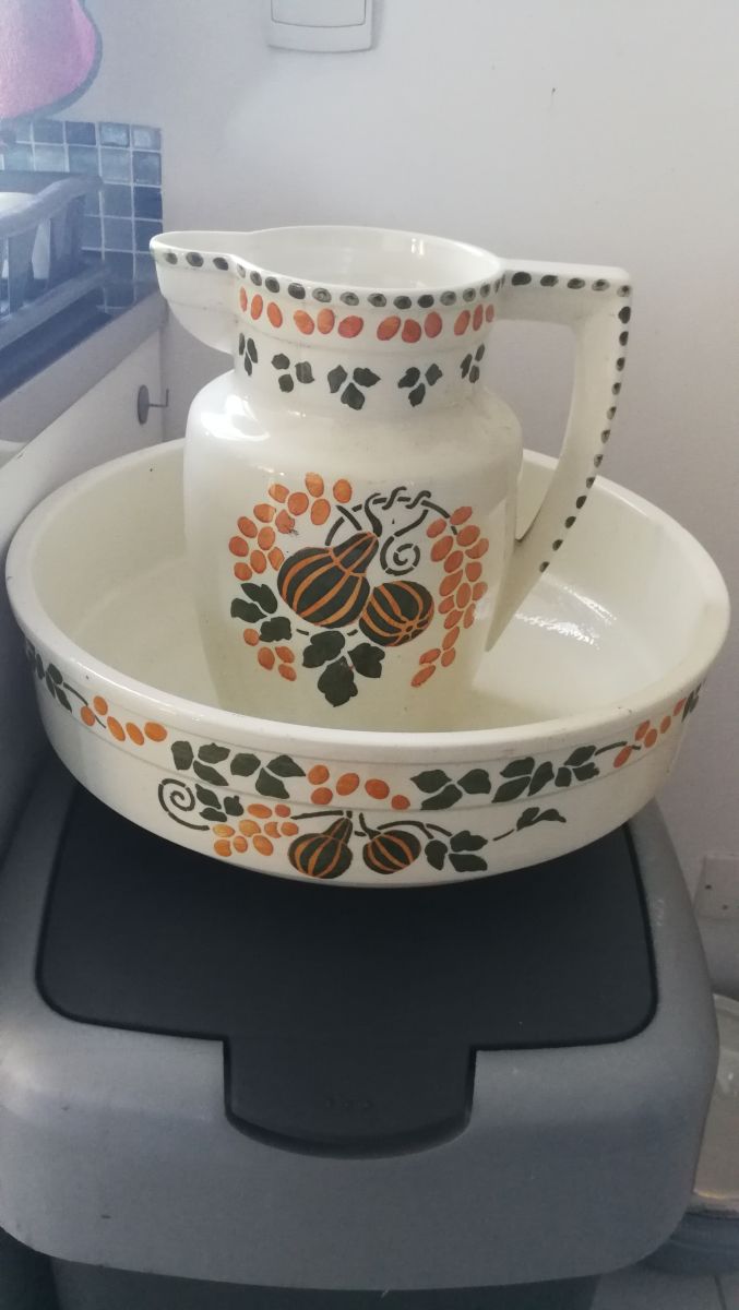 Jolie Service de toilette COLOQUINTE H. B. C M. FRANCE vintage en céramique, idéal pour une déco d'intérieur.