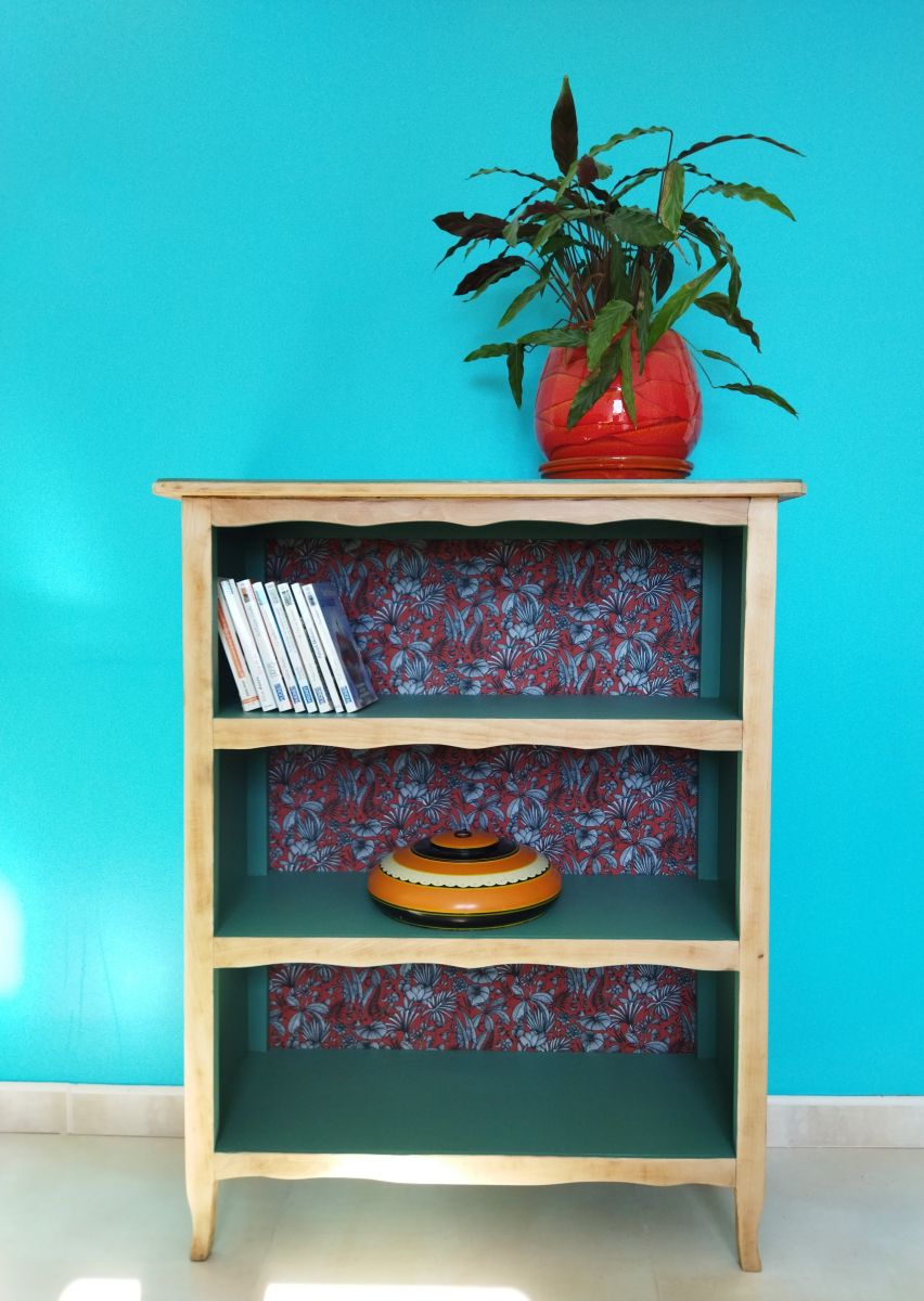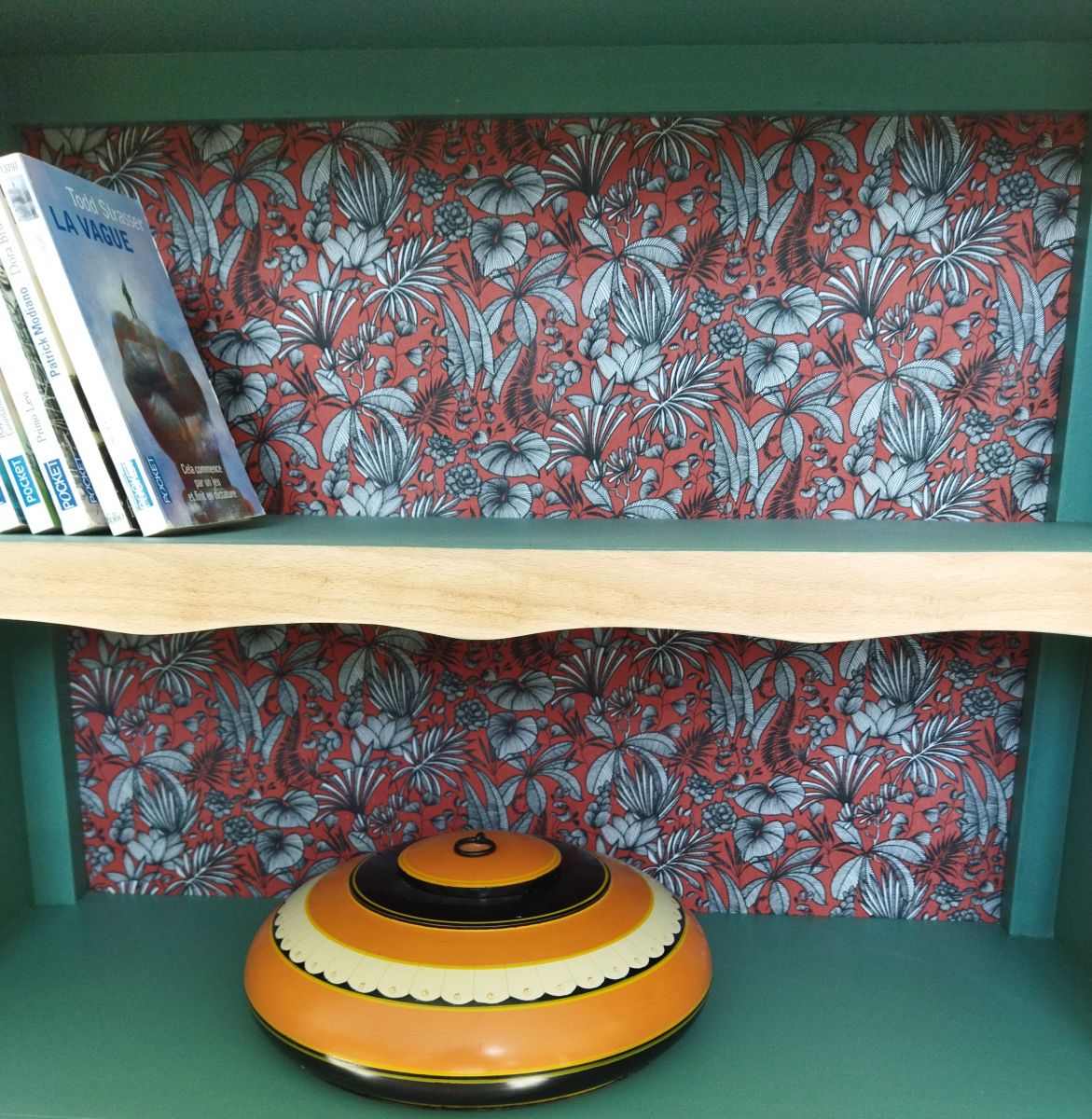 Joli Bibus revisité dans des couleurs actuelles, ici un vert fougère, et garni d'un tissu aux motifs floraux.