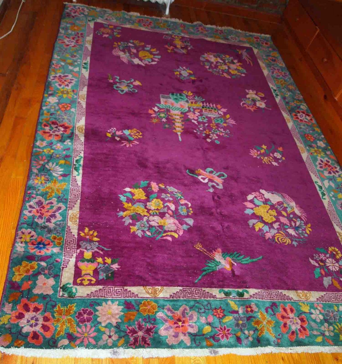 Handmade antique Art Deco Chinese rug in original good condition, the rug is from the beginning of 20th century.
