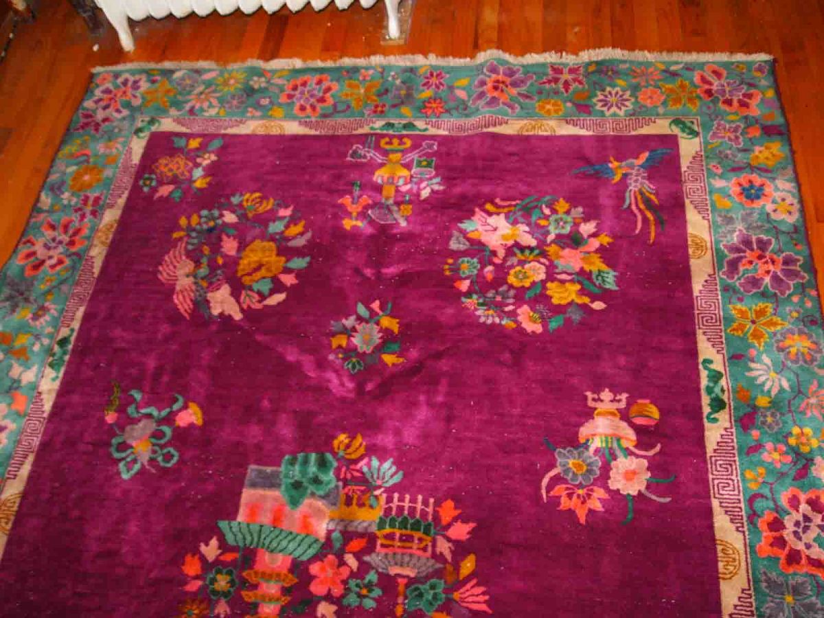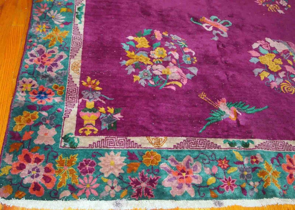 Tapis ancien Chinois Art Deco fait main, 1B870