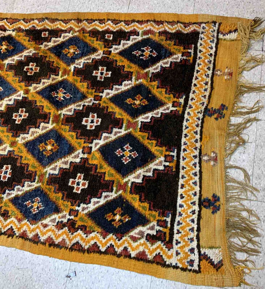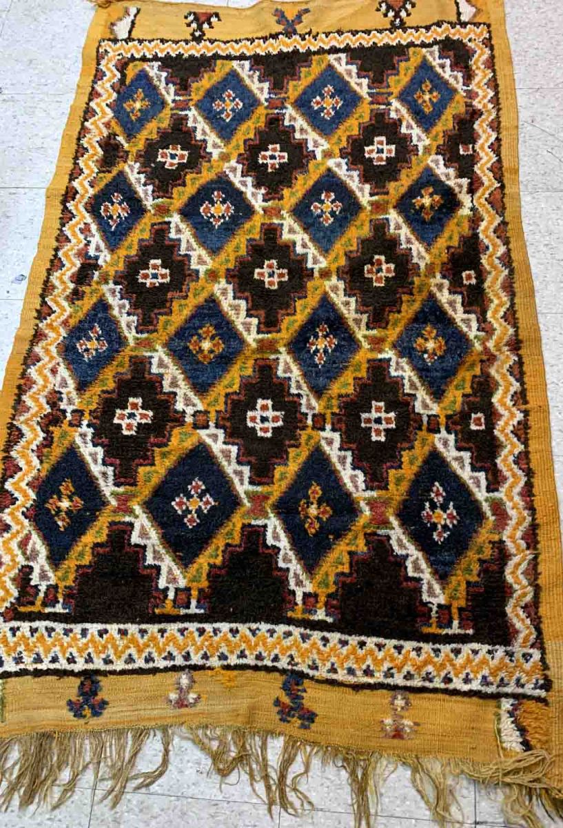 Handmade antique Berber rug from Morocco in original good condition. The rug is in geometric design from the end of 19th century.