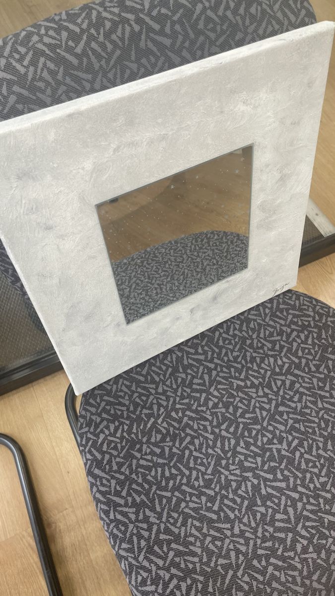 Miroir, artiste roannaise, dans les teintes claires (blanc, beige, gros, argent) pour une décoration contemporaine.
