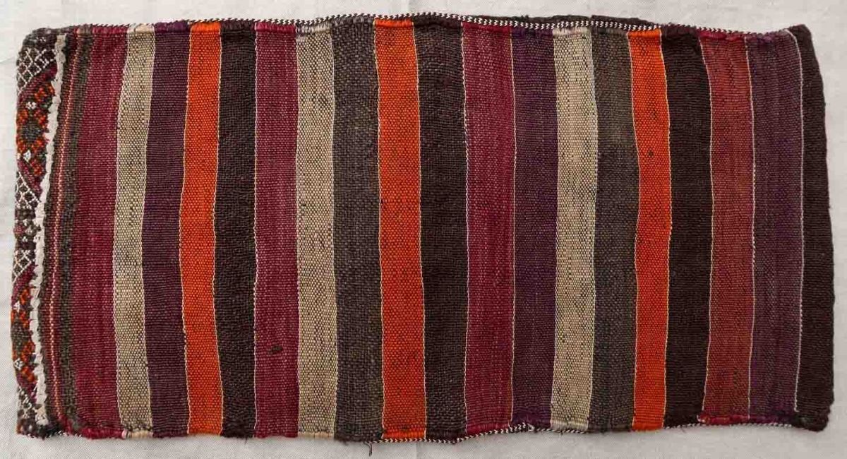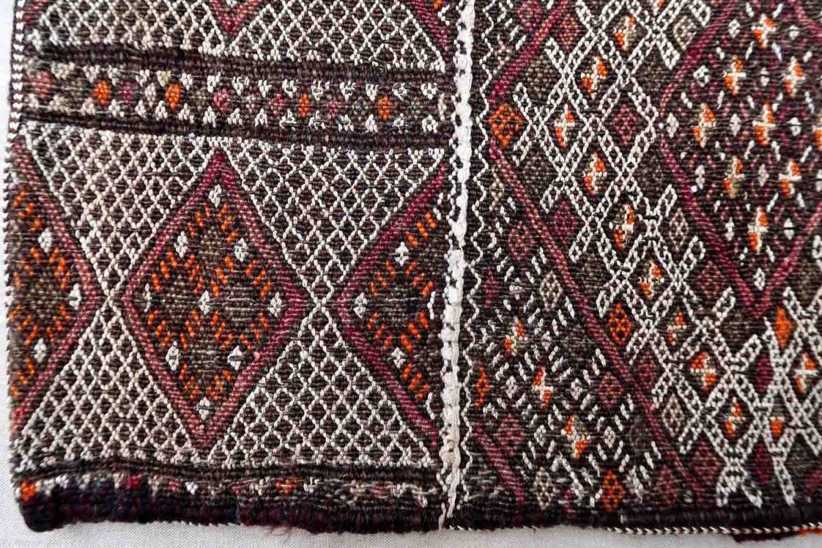 Handmade vintage Moroccan Berber cushion made out of vintage kilim. The flat-weave is from the middle of 20th century, it is in original good condition.