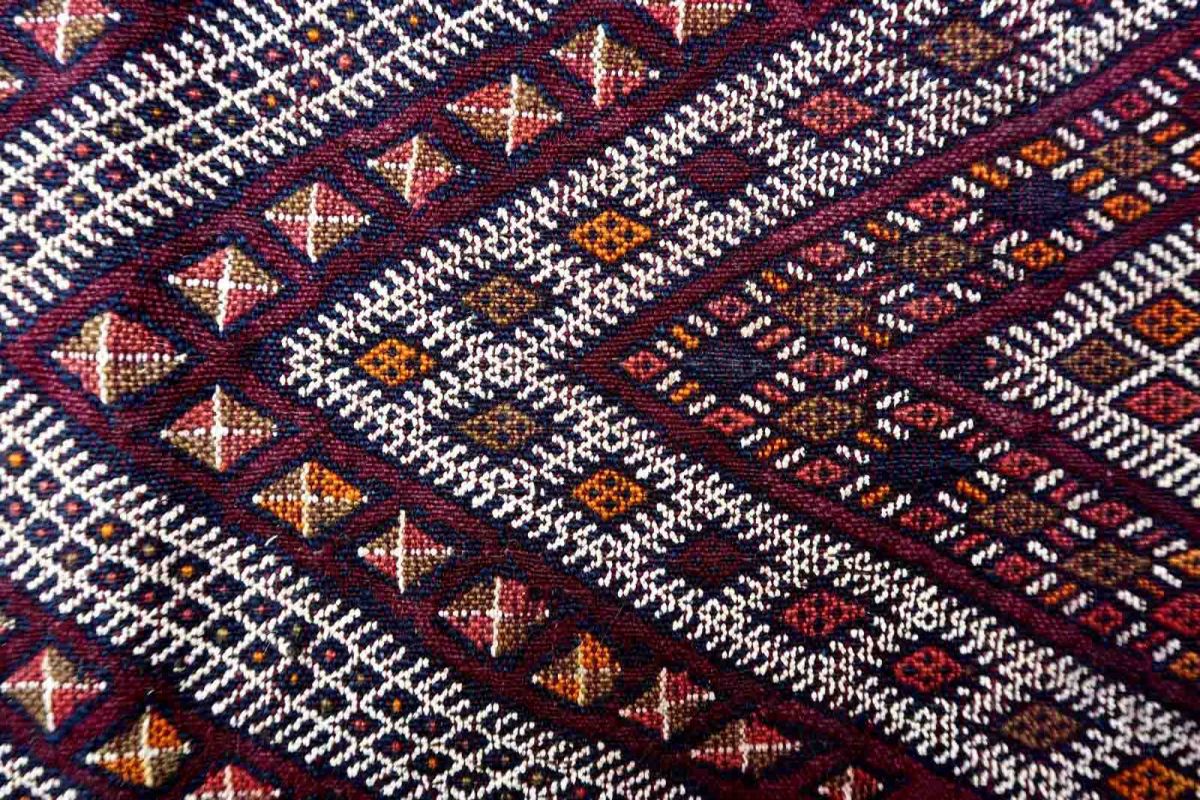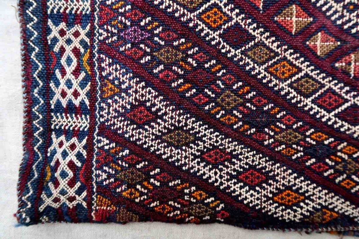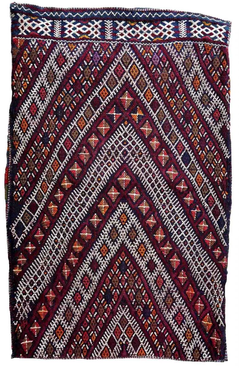 Handmade vintage Moroccan Berber cushion made out of vintage kilim. The flat-weave is from the middle of 20th century, it is in original good condition.