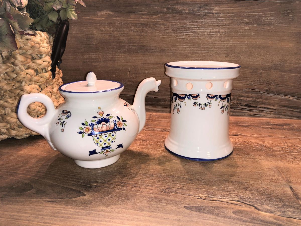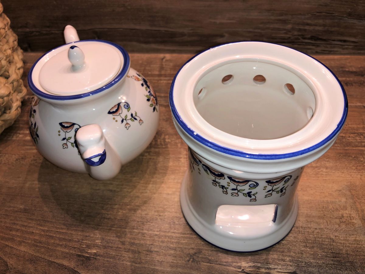 Théière avec Réchaud Céramique Faïence style Vieux Rouen