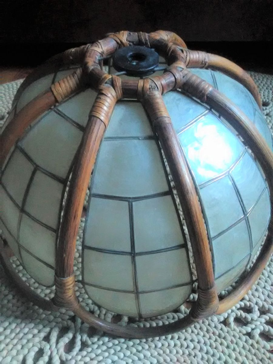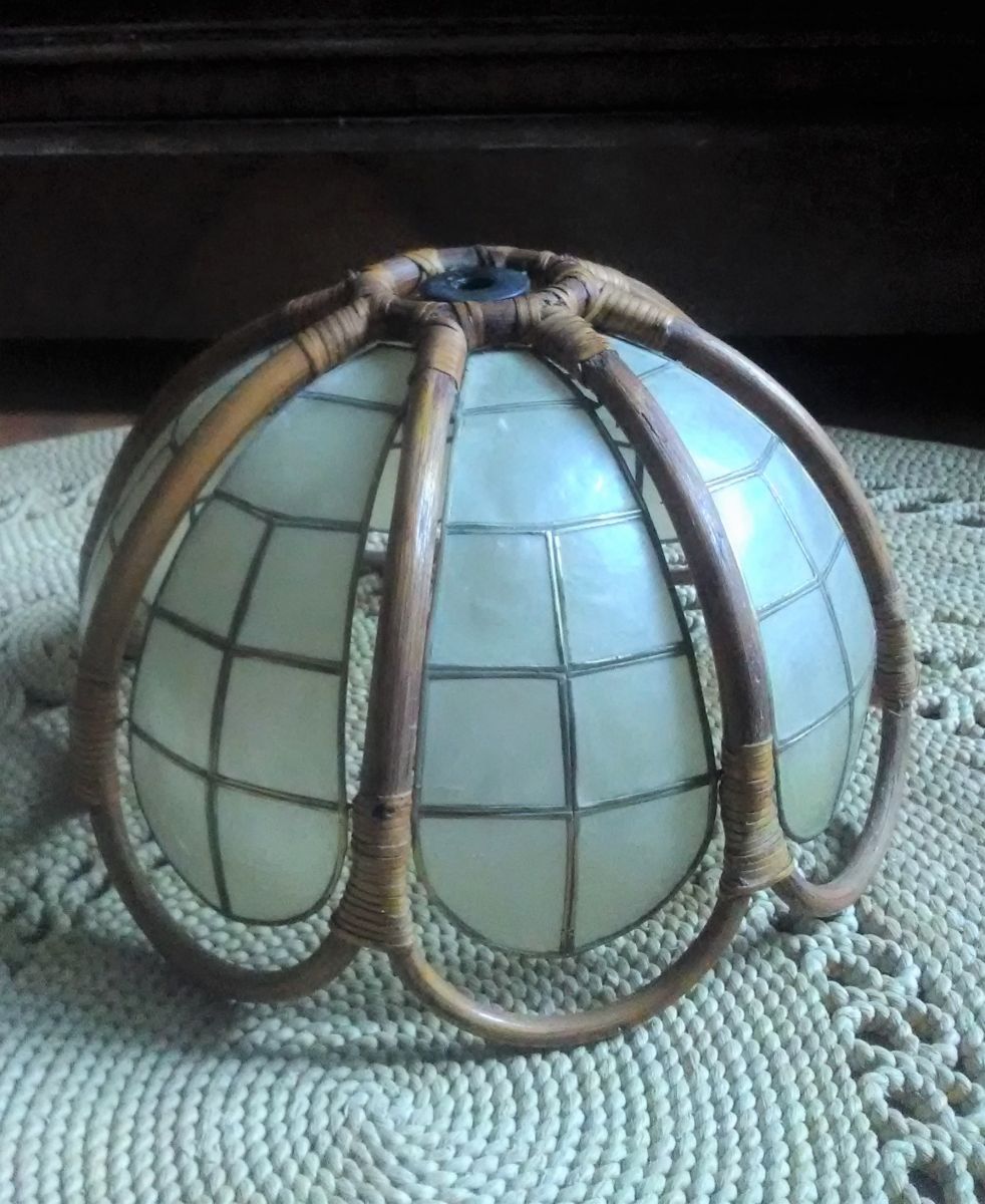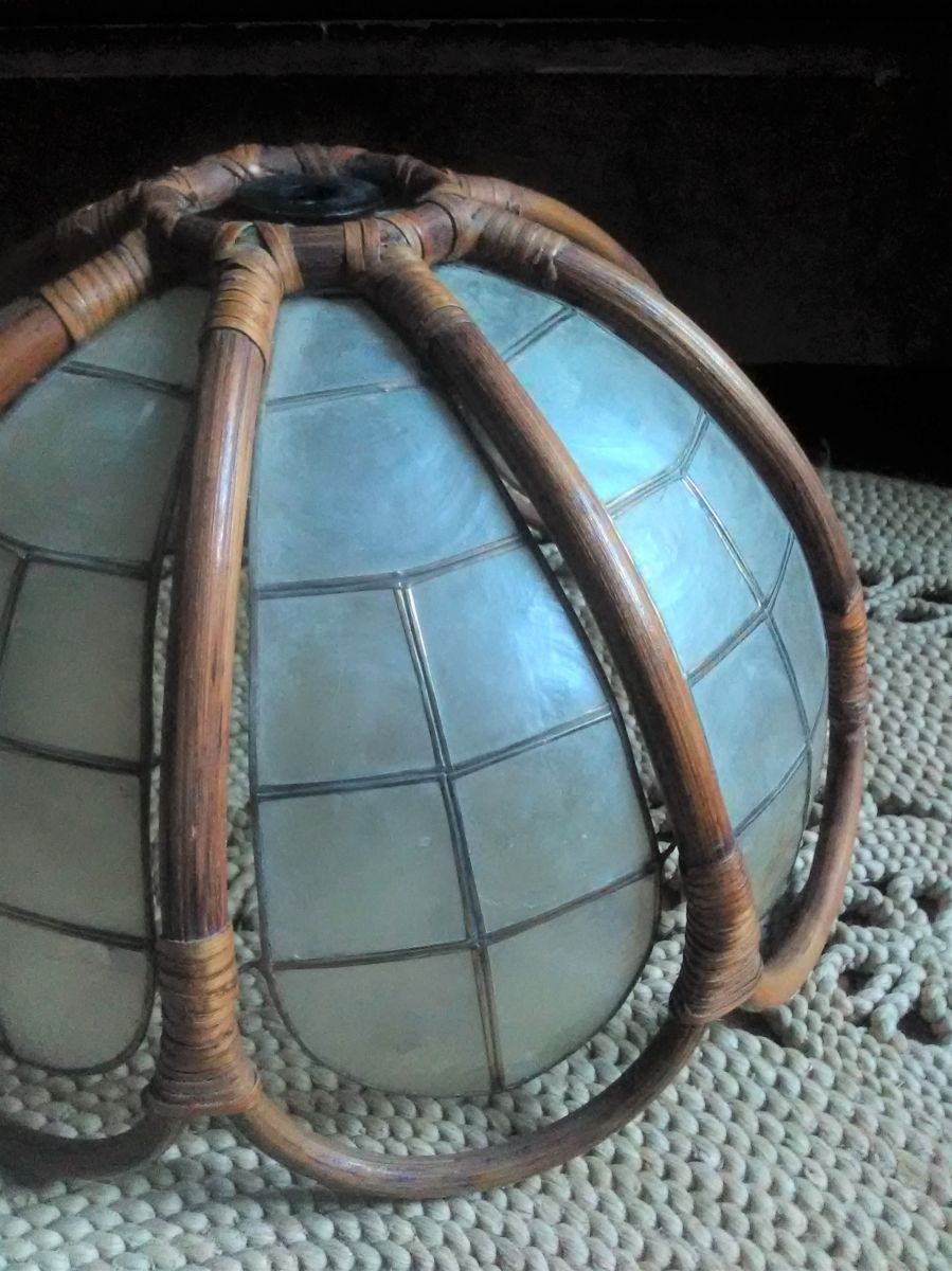 Suspension/abat jour en rotin et en nacre (années 60)