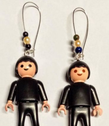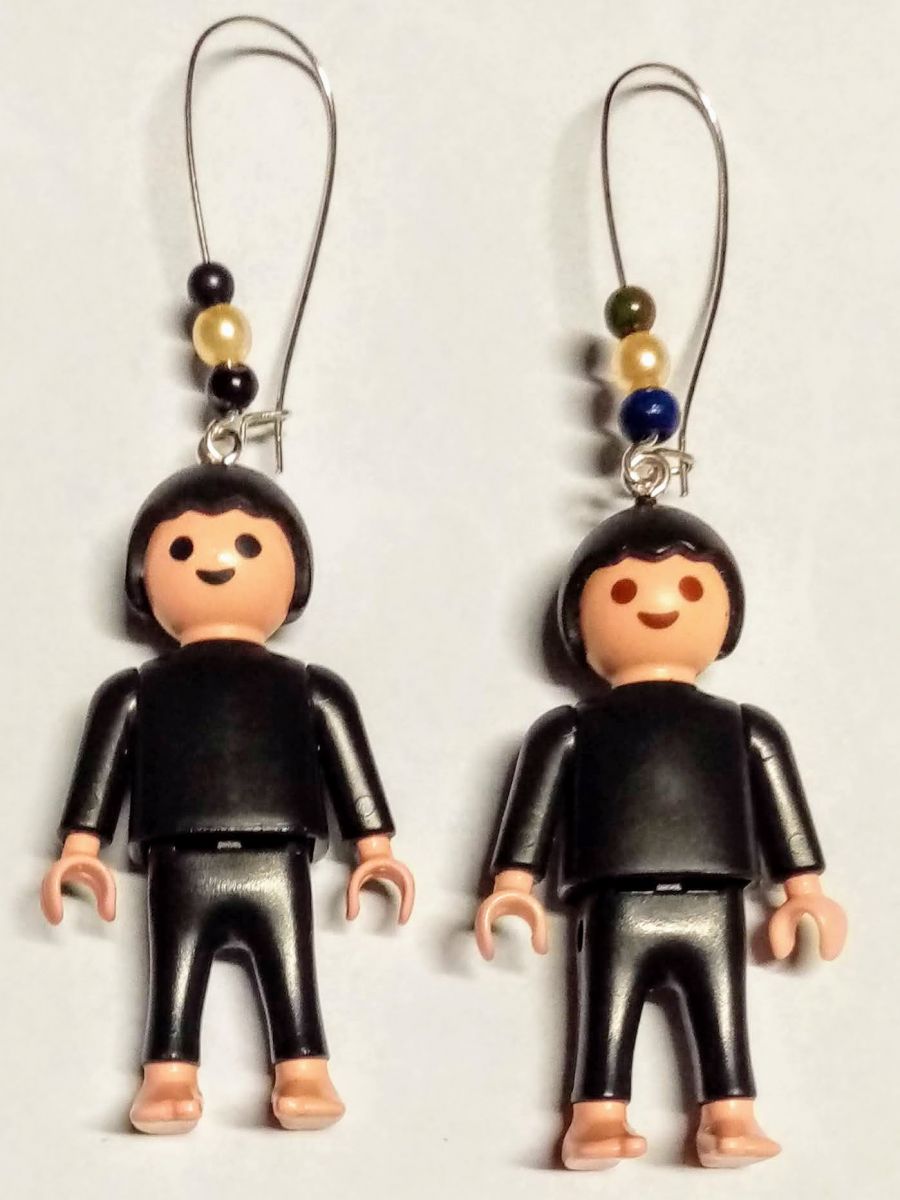 Boucles d'oreilles Playmobil avec des dormeuses argentées sans nickel qui ne bougent pas ni ne provoquent de réaction allergique. Garnies de perles assorties à la petite et légère figurine d'enfant Playmobil.
