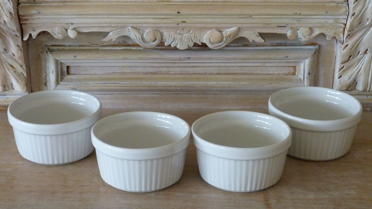 4 ramequins vintage en céramique blanche