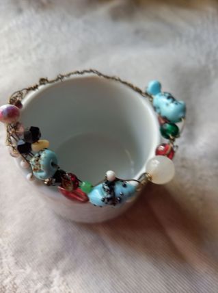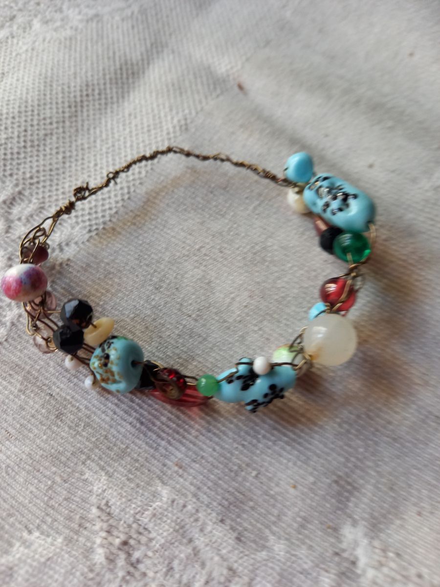 Bracelet de perles anciennes montées sur fil de laiton