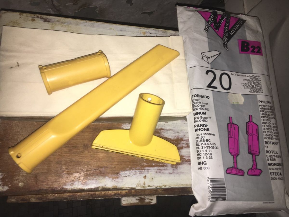 Aspirateur balai année 60 marque Paris-Rhône. En état de fonctionnement. Vendu avec les accessoires et 15 sacs.A récupérer à Paris 9ème