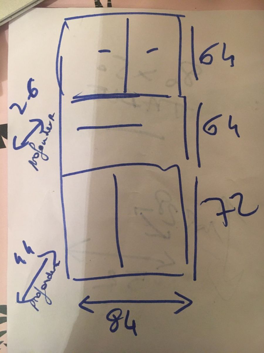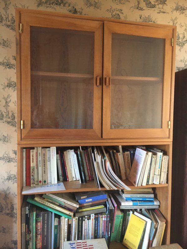 Bibliothèque en bois en 3 blocs. Haut vitré, bas fermé Mesures précises sur la photo jointe A venir chercher à Paris dans le 9ème.
