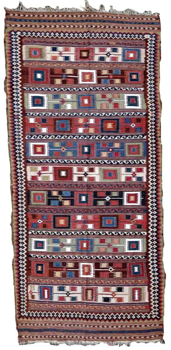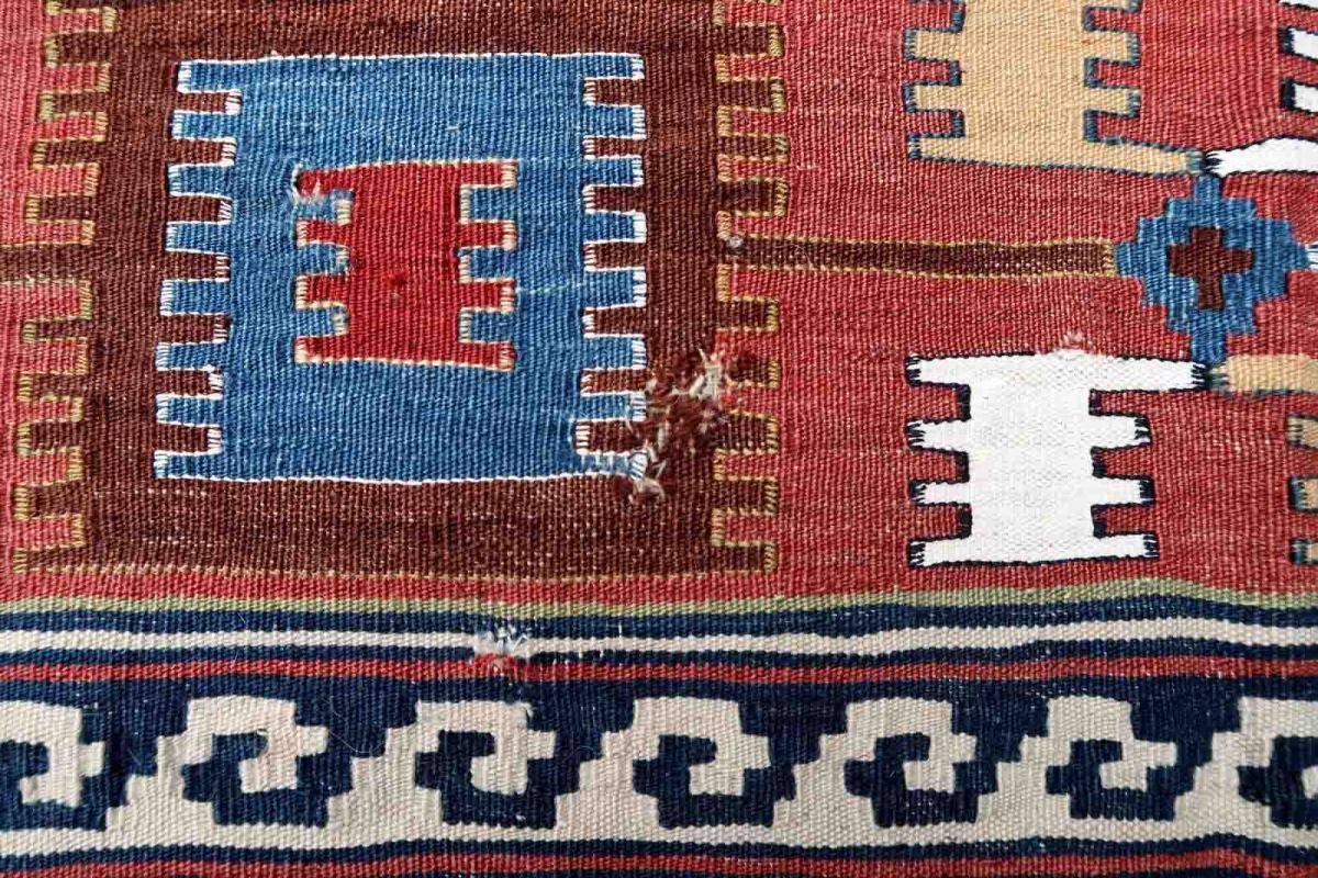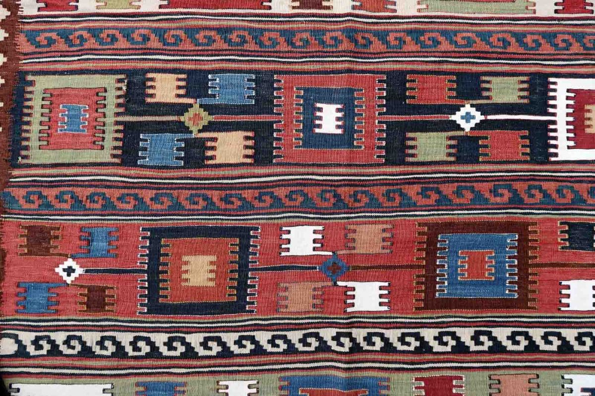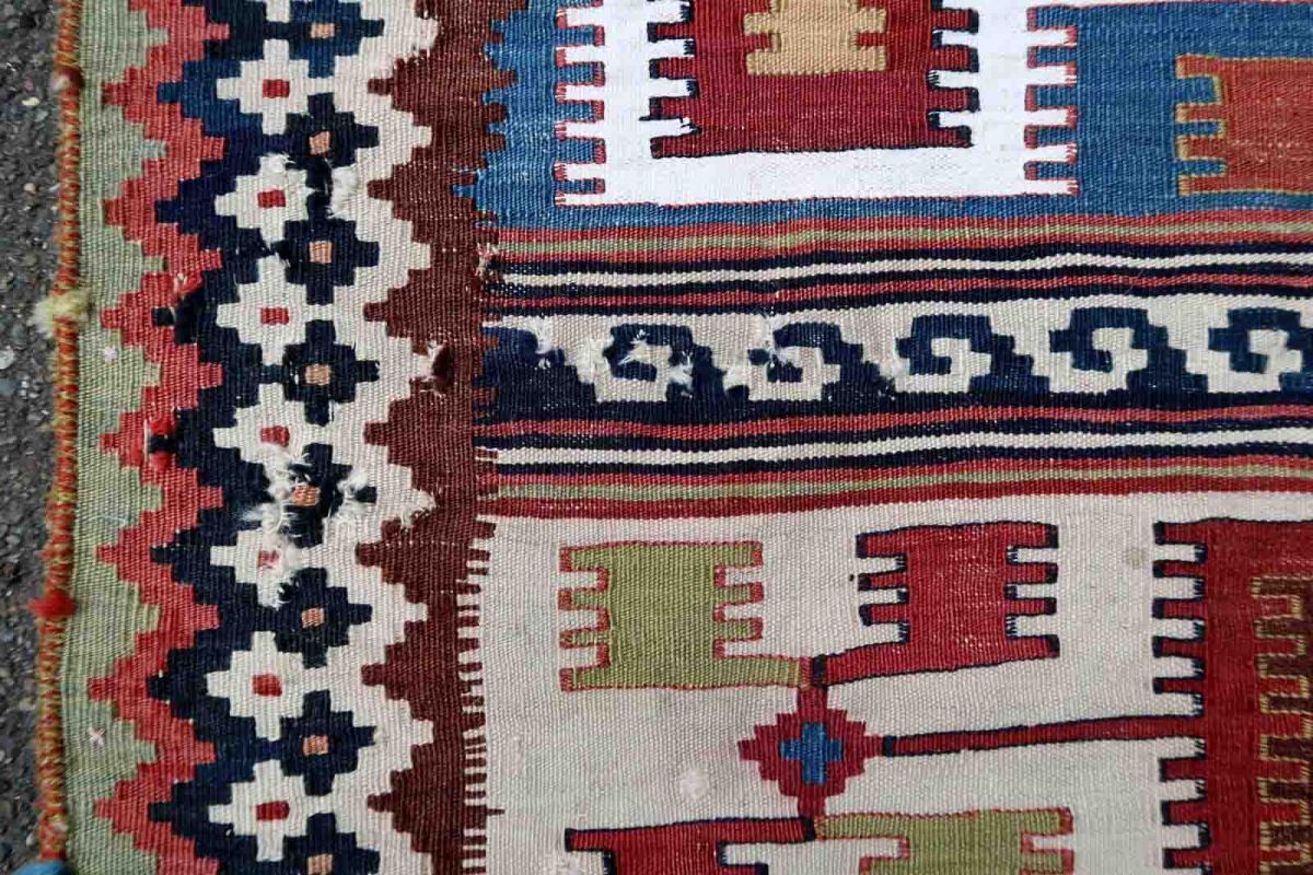Antique Gashkai kilim from Middle East in colorful shades. The rug is from the beginning of 20th century in original condition.