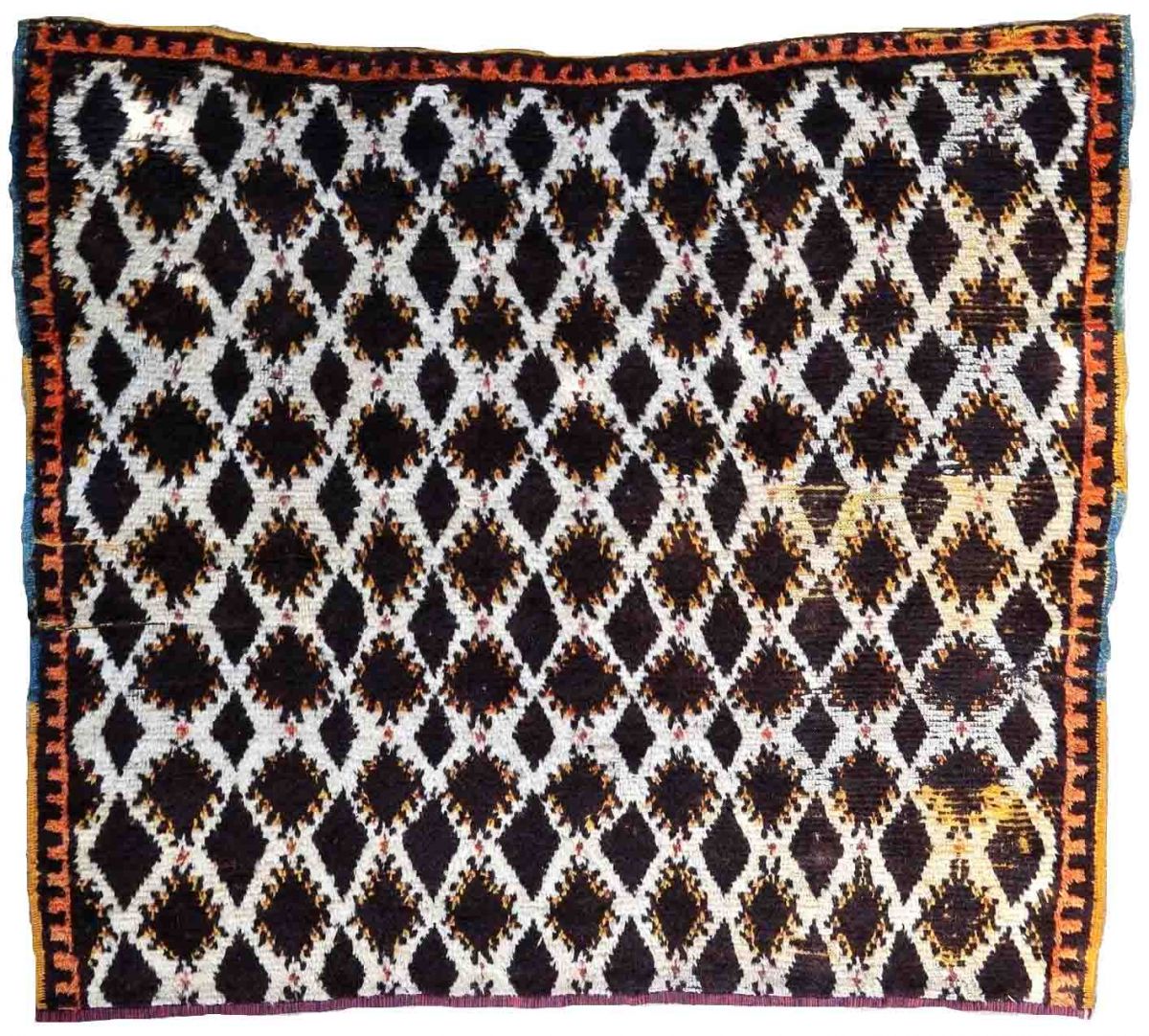 Antique handmade Moroccan fragment from the Ouarzazate region, in the High Atlas. The rug is from the beginning of 20th century made in wool.