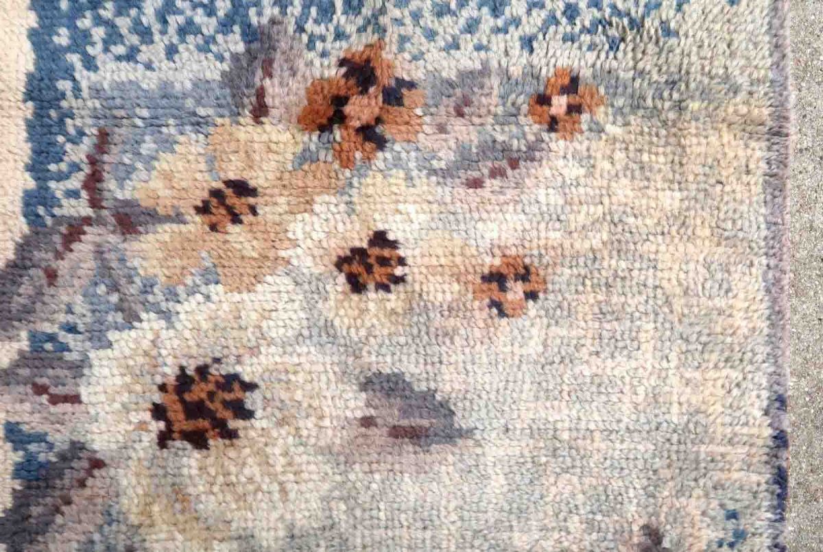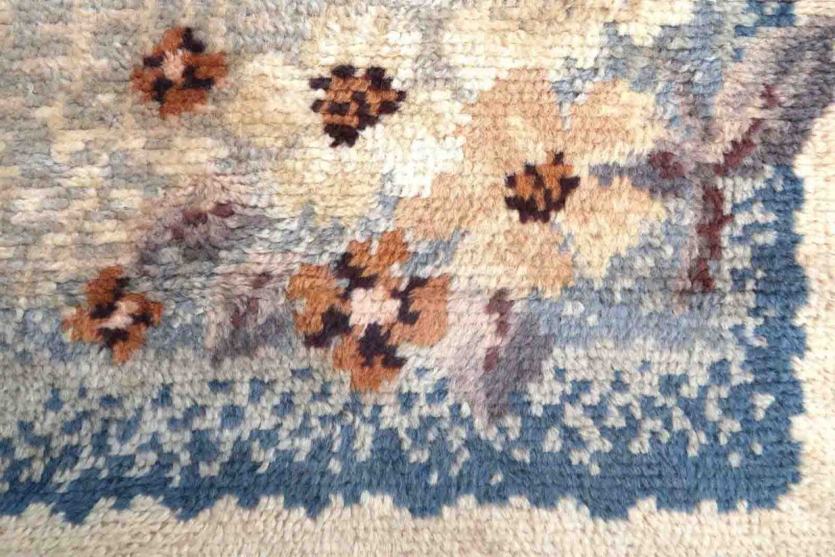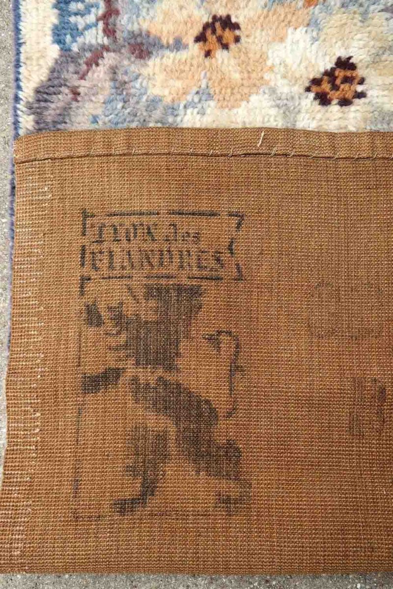 Antique French Art Deco rug with the symbol of Flanders. The rug is from the beginning of 20th century in original good condition. The rug made in wool, it is machine made.