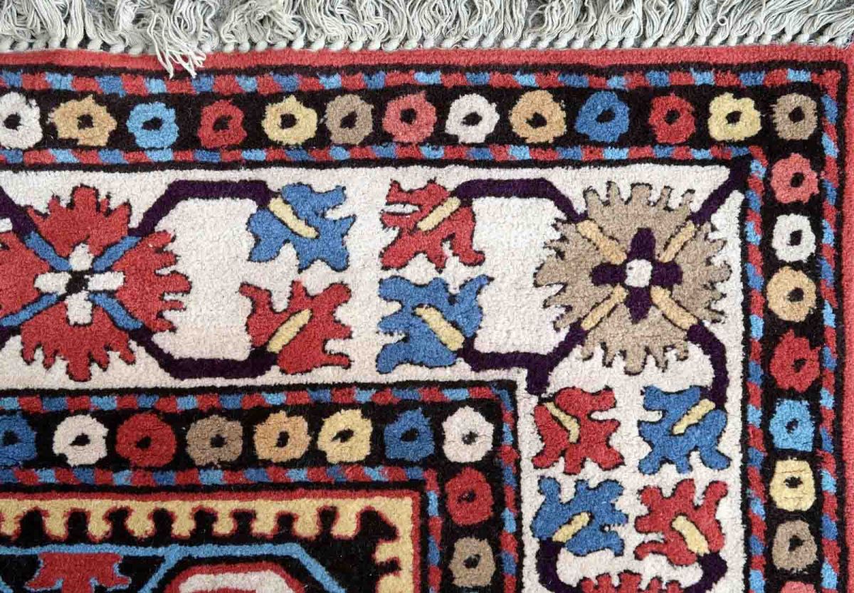 Antique European Savonnerie rug from France. This rug has been made in the years 1950s, designed with an innovative technique for the time. The rug made in wool.