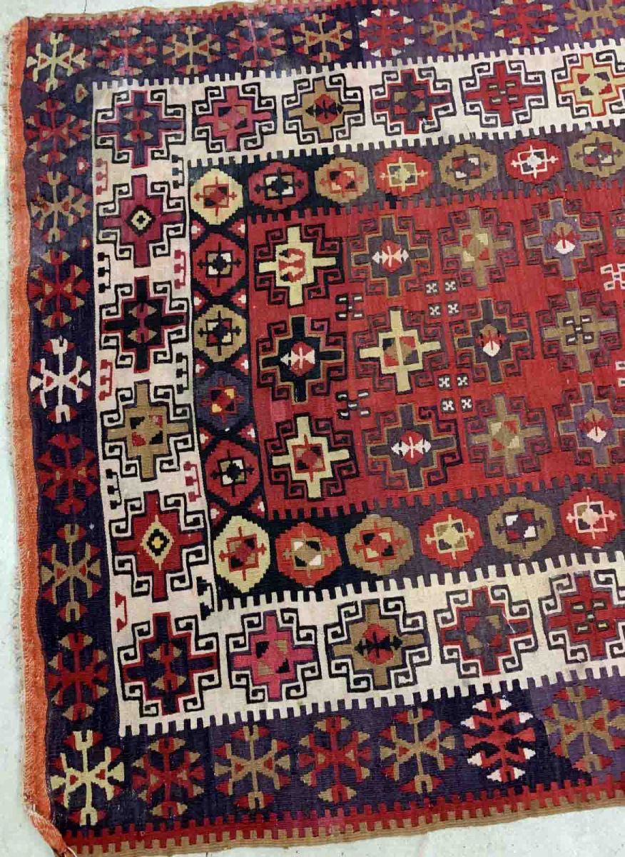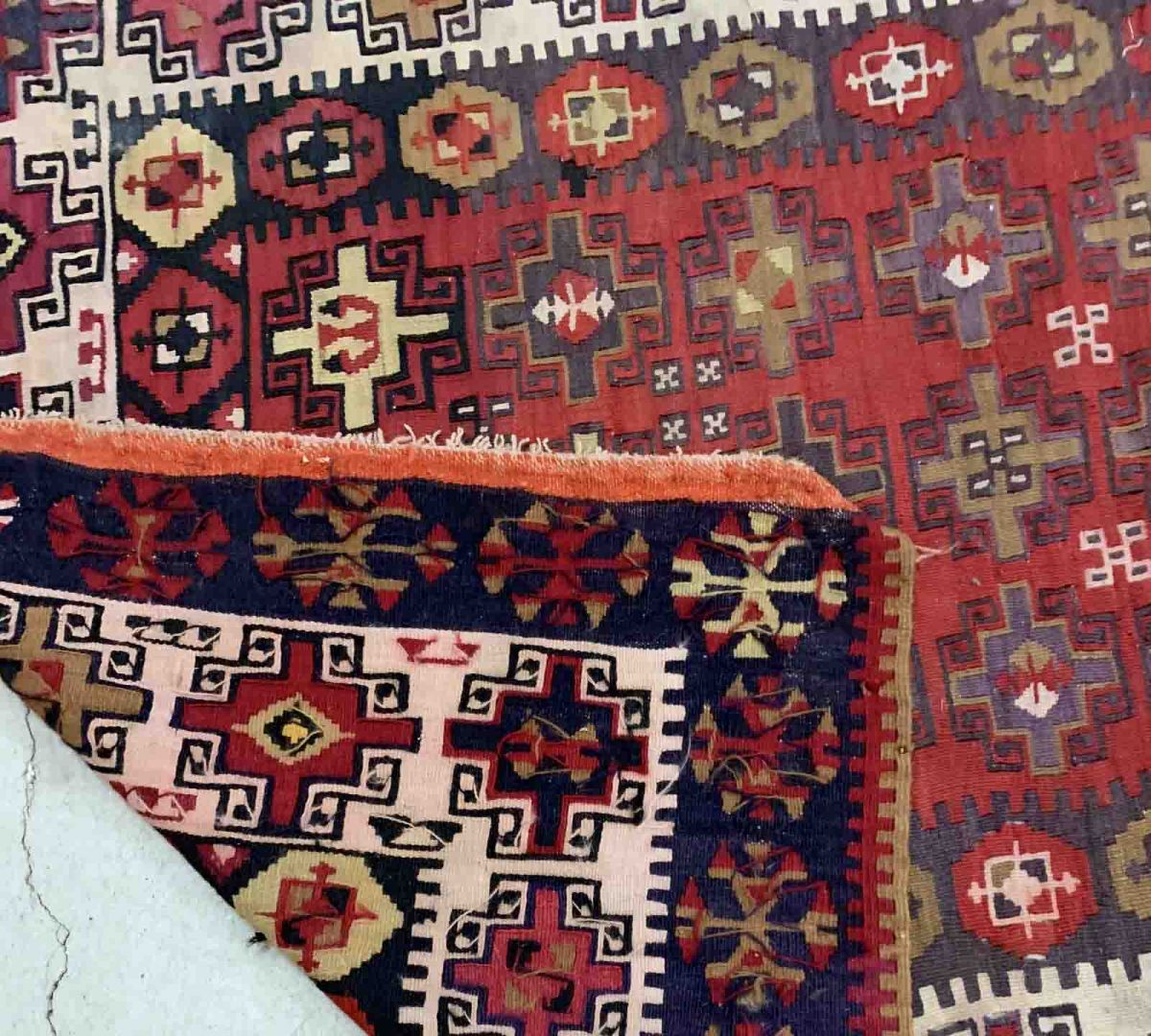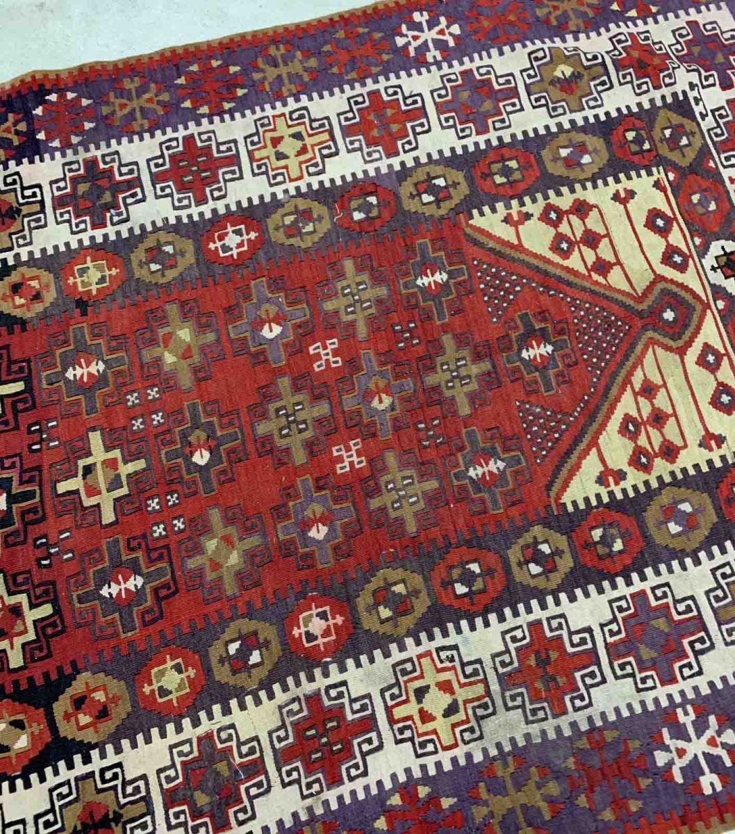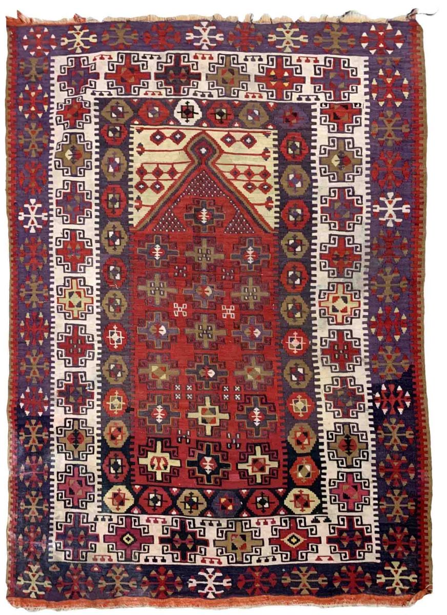 Handmade antique prayer Turkish kilim in bright shades. The rug is from the beginning of 20th century in original good condition.