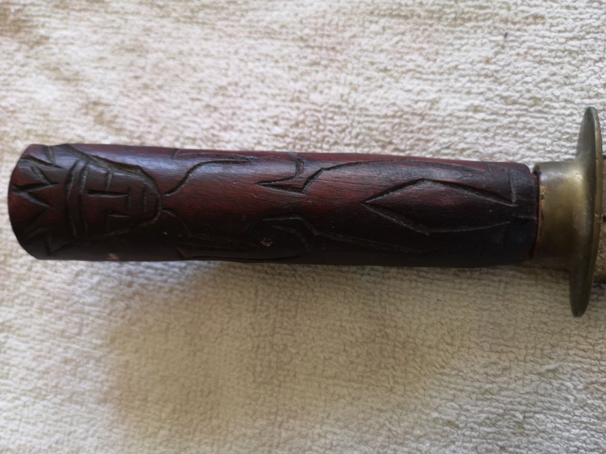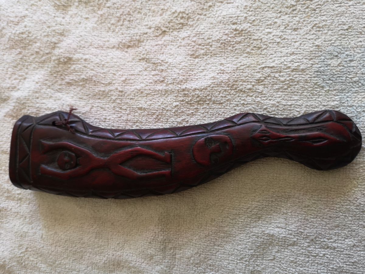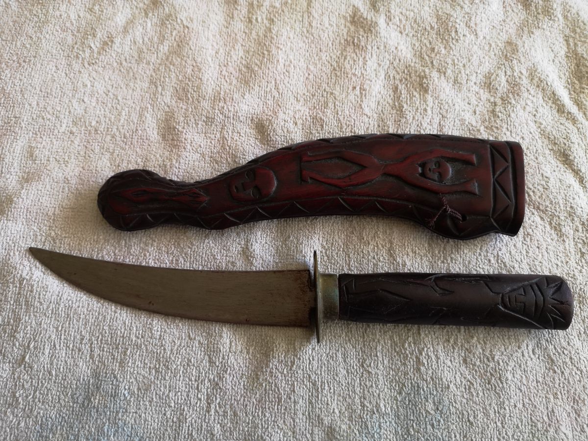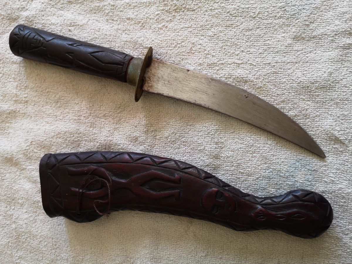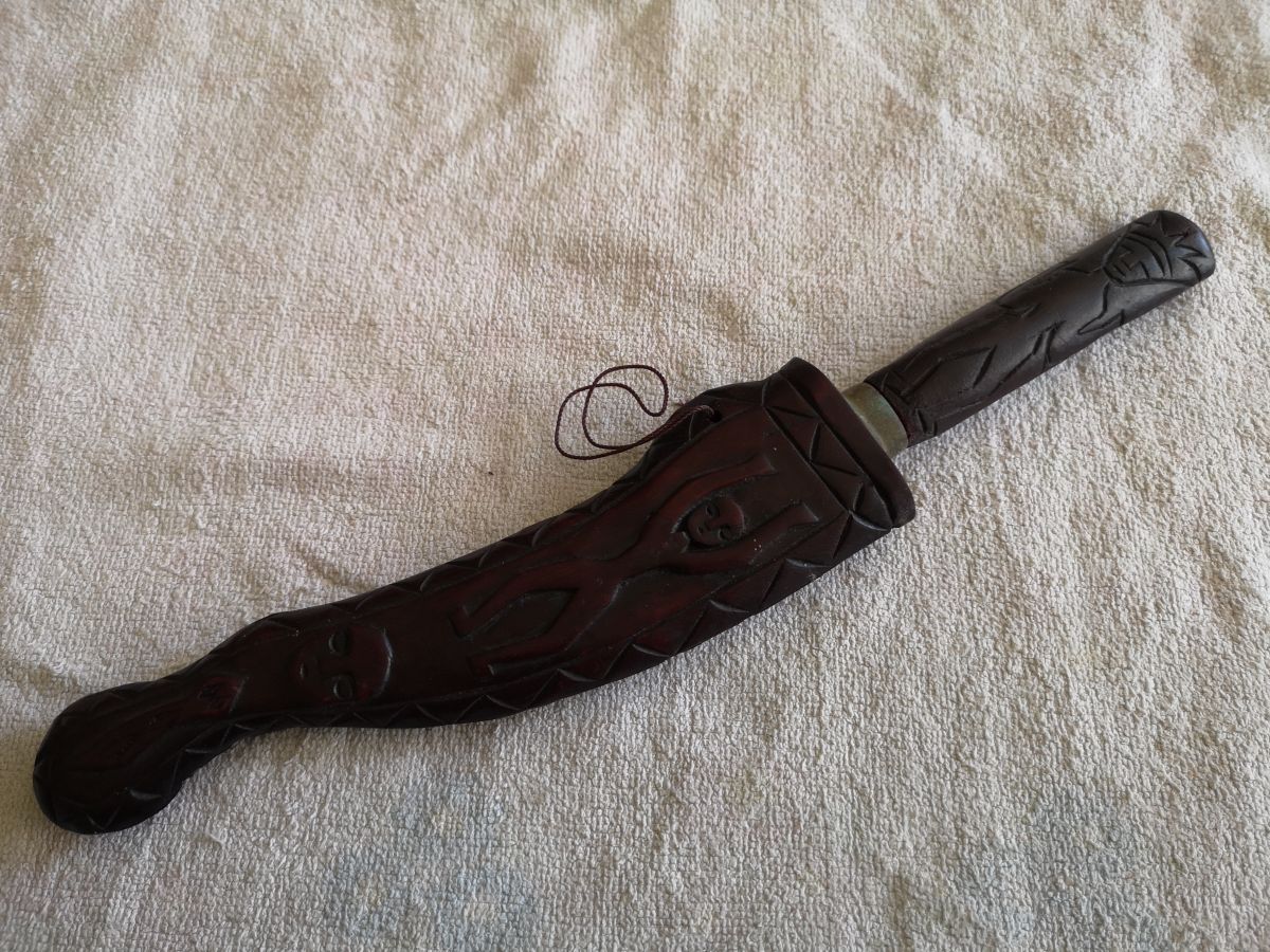 ancien couteau décoratif ethnique africain manche et fourreau en bois sculpté longueur de l'ensemble 35 cm et en très bon état