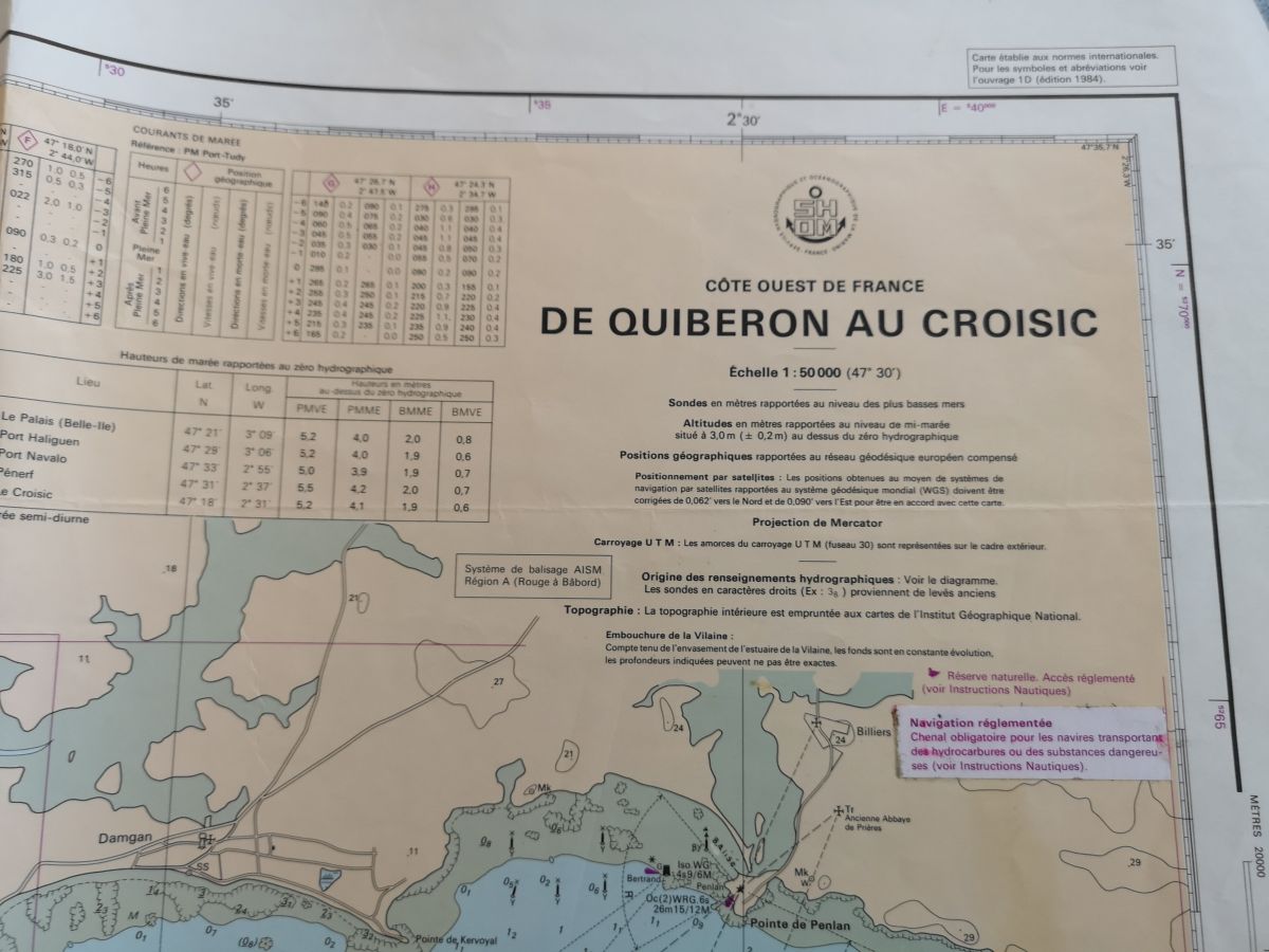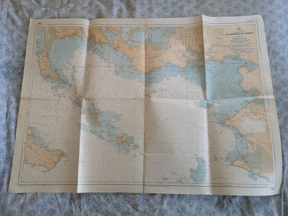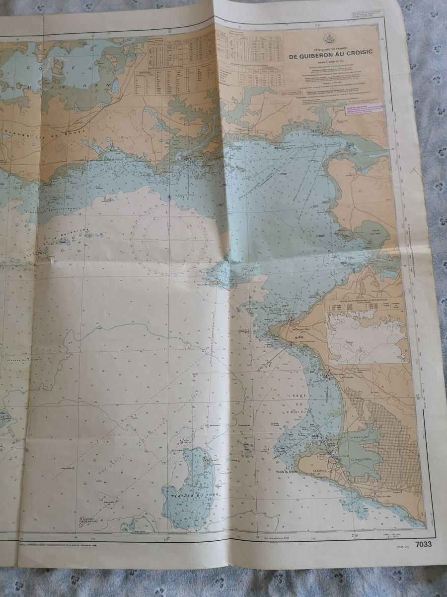 vrai grande carte plan au 1.50.000é. de bretagne de Quiberon au Croisic 1metre, 80 par 88 cm fin cartonnage culeur et en excellent état .