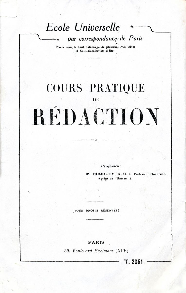 Cours pratique de rédaction - Pr. Boucley - Année 1934
