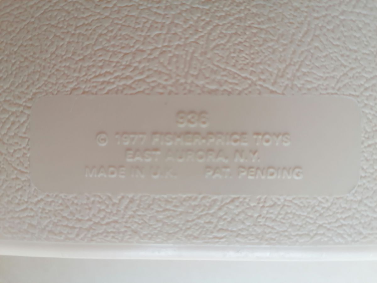 Malette de docteur de Fisher Price. Deux pieces sont légèrement mordillées (l'un des bouchons orange du stéthoscope et l'otoscope, objet bleu pour regarder le conduit auditif). Sinon malette complète.