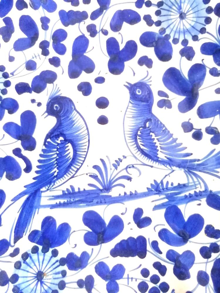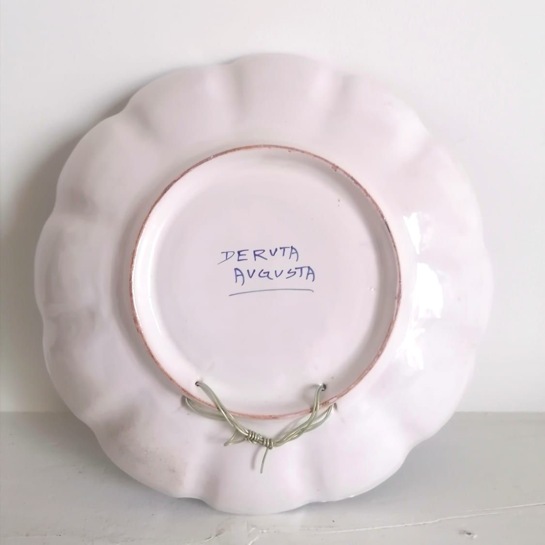 Travail du milieu du XXème siècle reprenant un décor traditionnel du XVIIème siècle. Car Deruta est un haut lieu de production de faïence depuis la Renaissance, sa manufacture se situe près de Pérouse en Ombrie et ses productions traversent les siècles avec un grand succès.