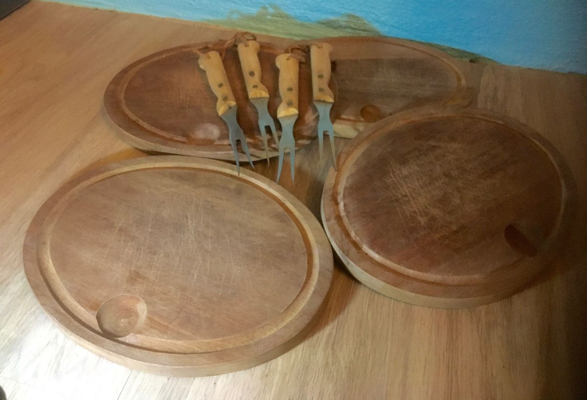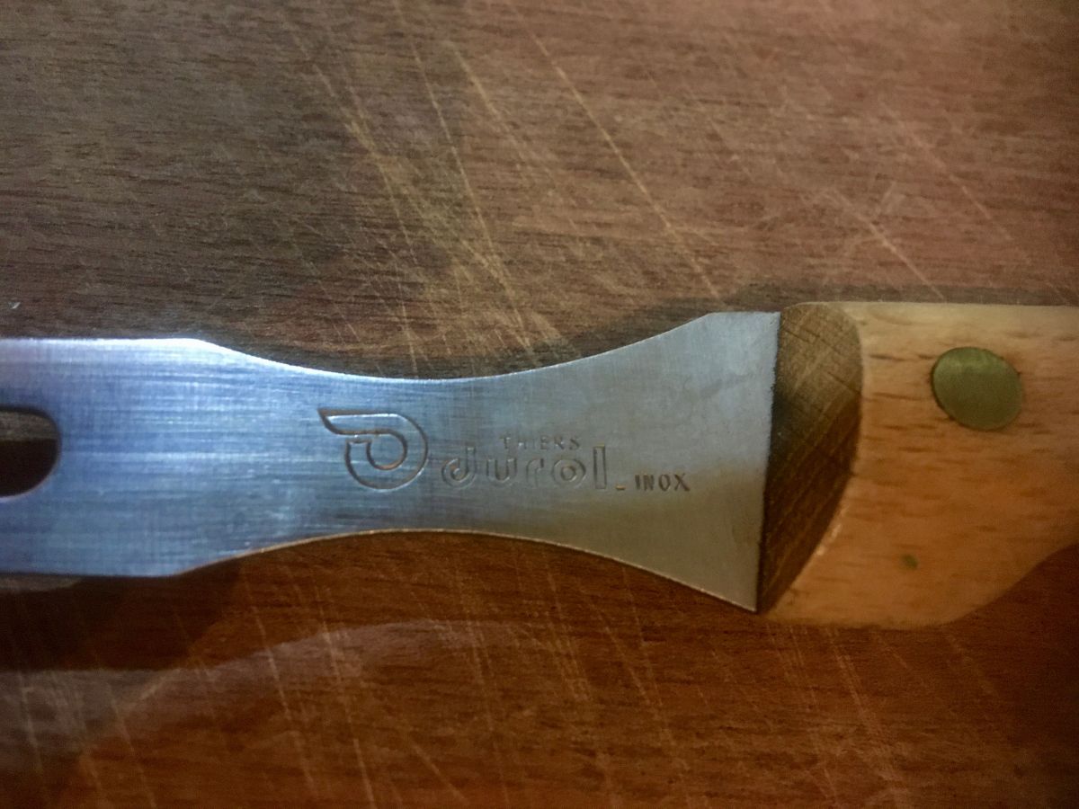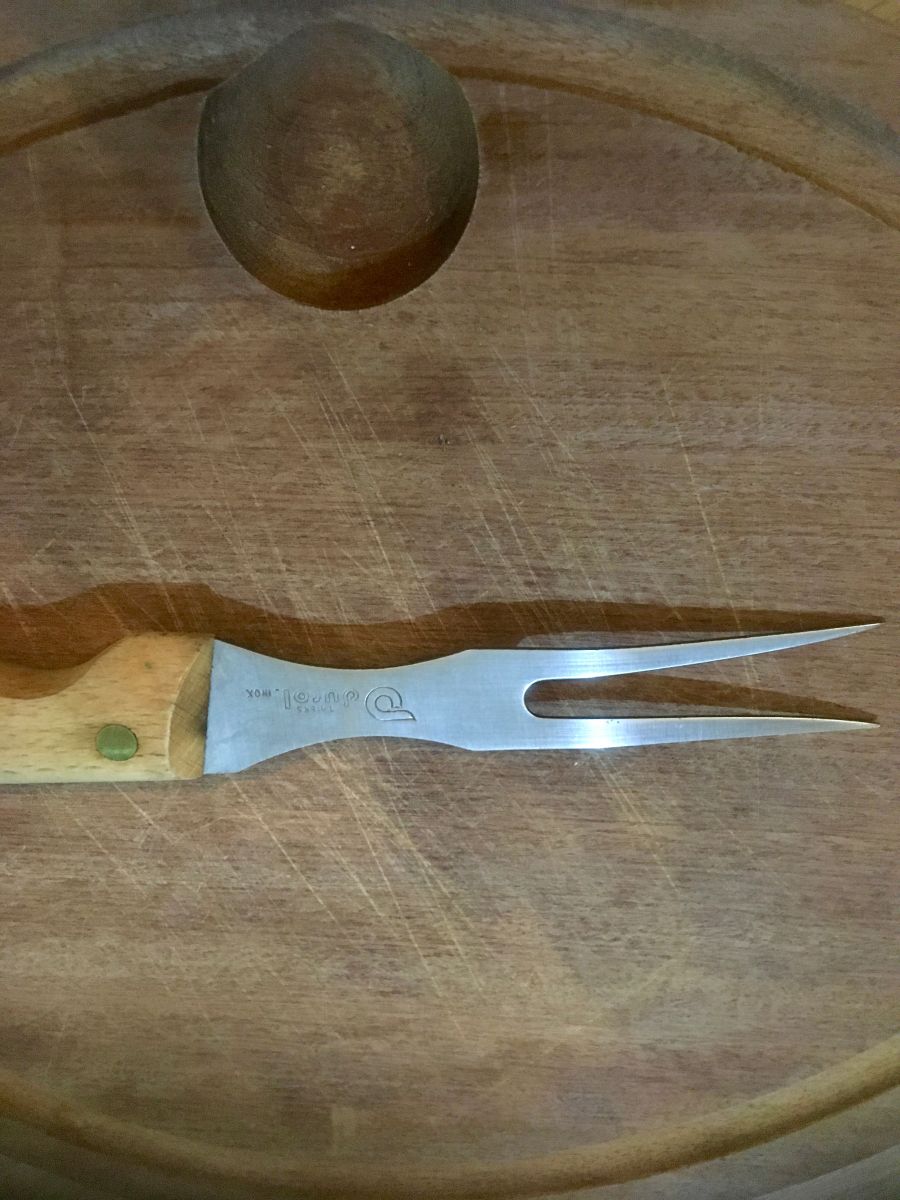 à deux piques en inox et bois massif, agrémentées d'un lien en cuir.