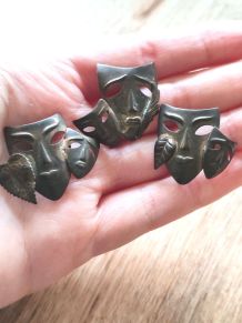 Broche en laiton et pierre onyx noire