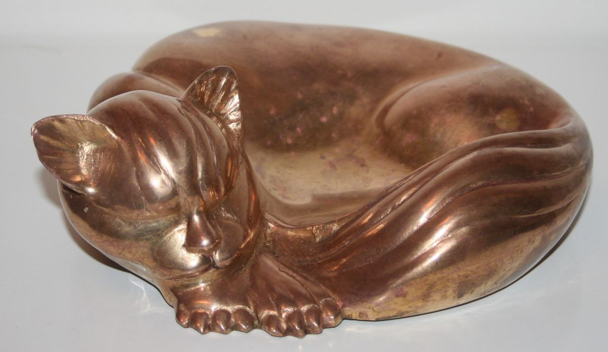 Superbe vide poche en bronze realisé au debut du 20éme Siecle. Il represente un chat en pleine