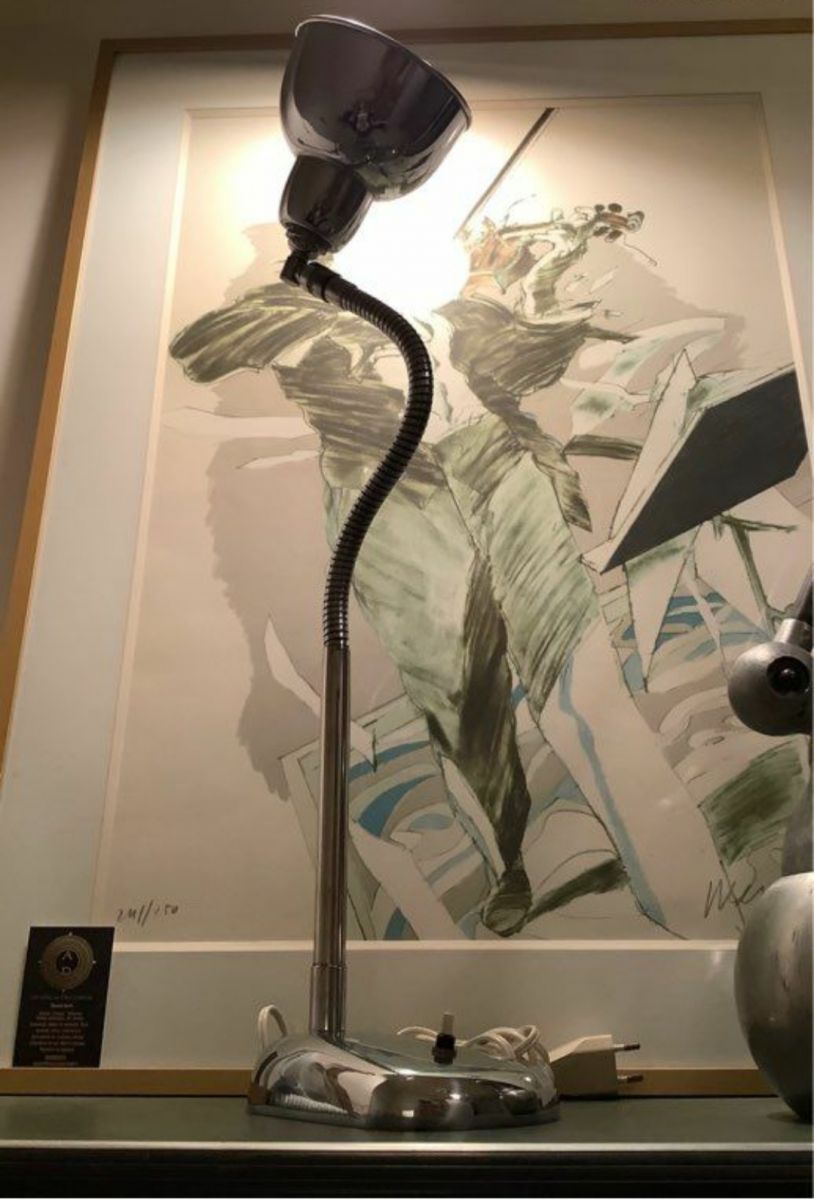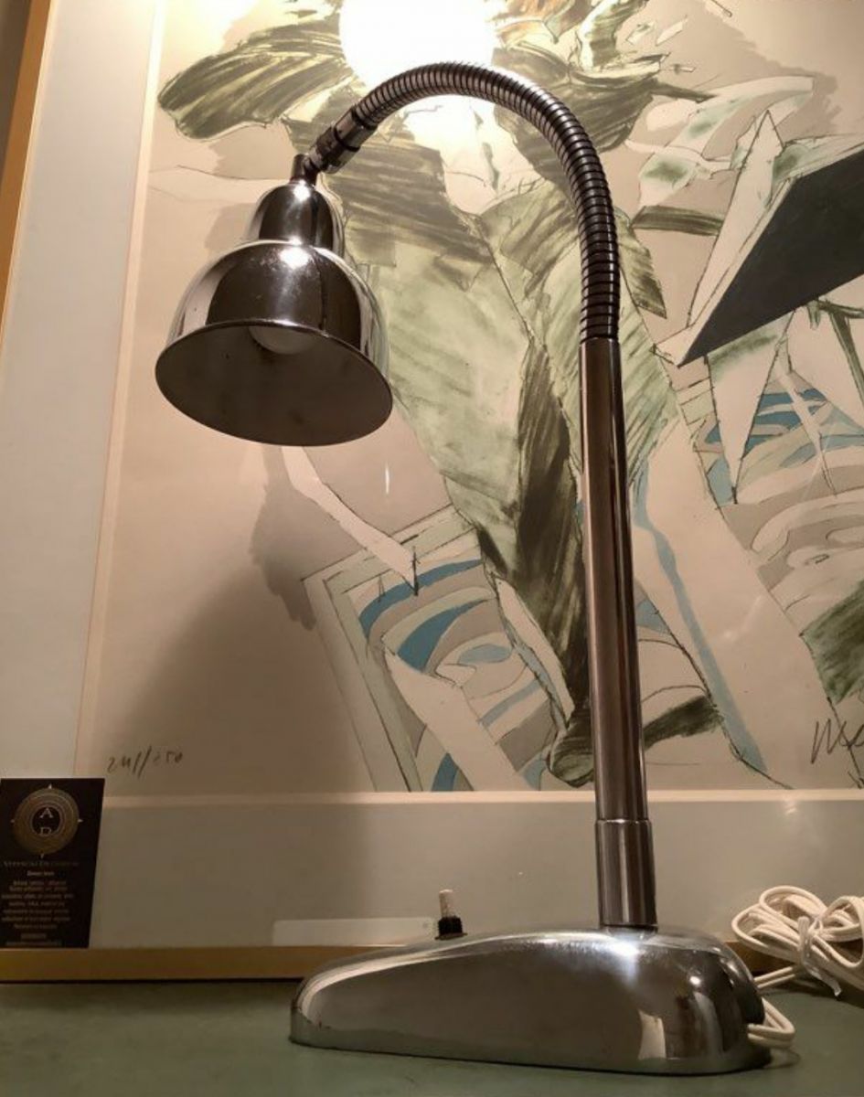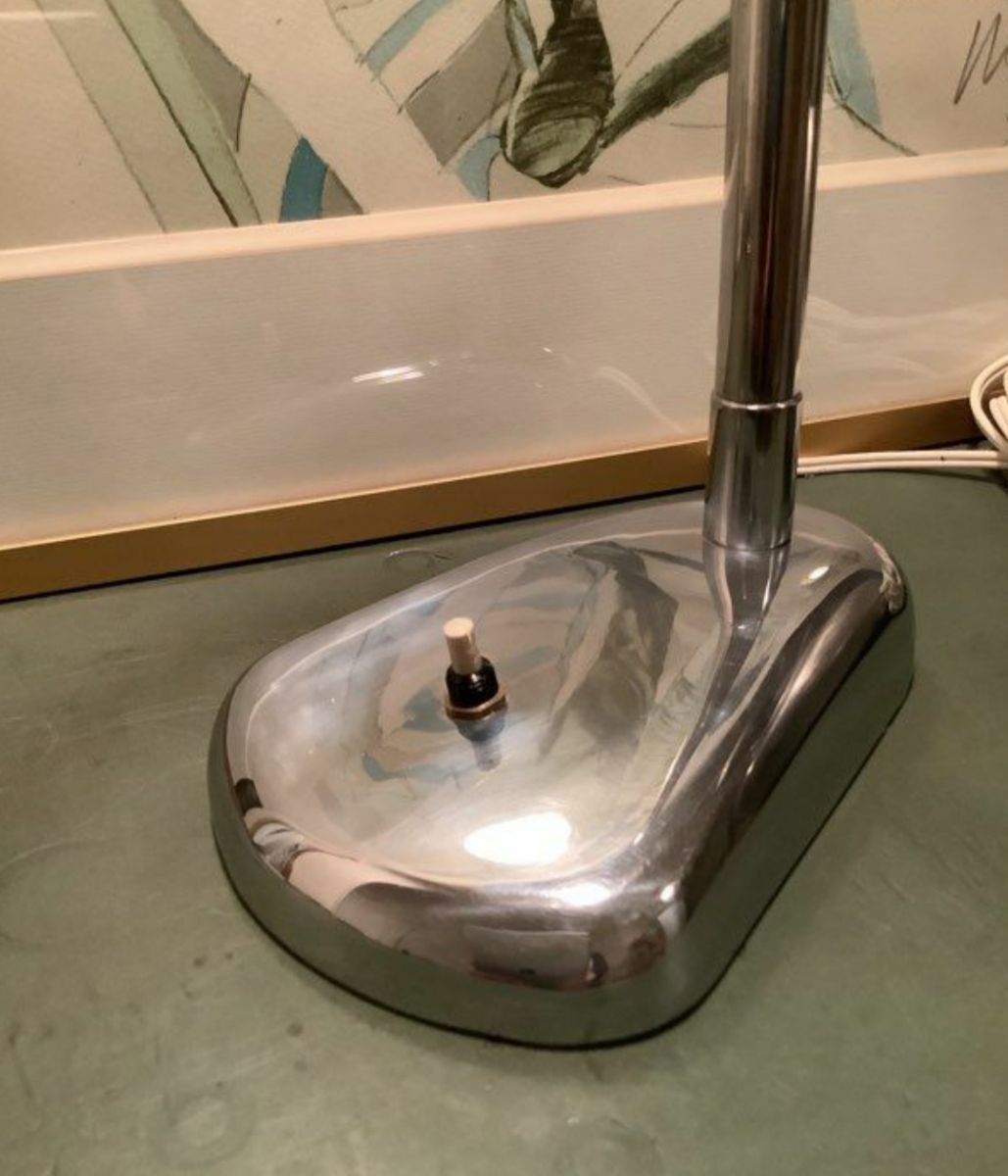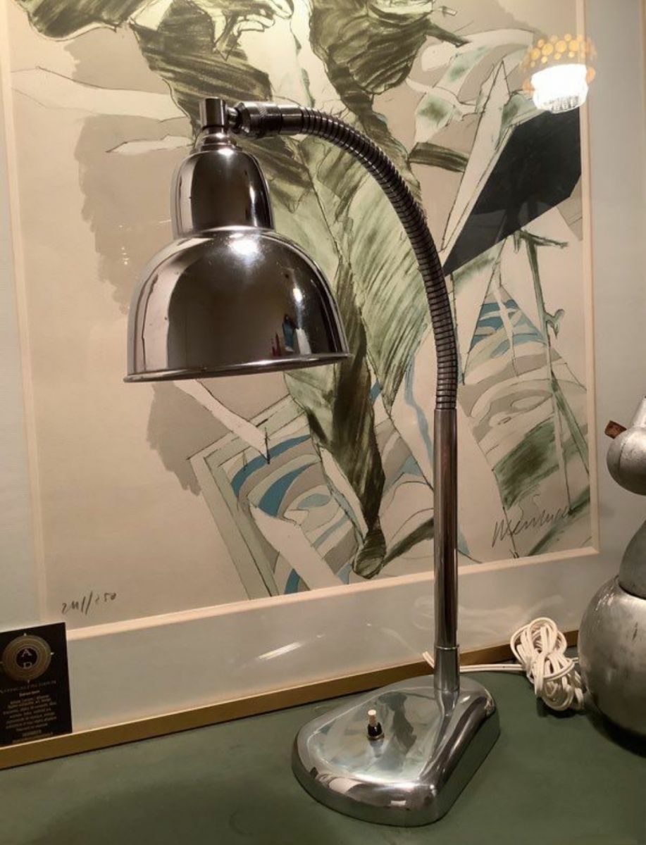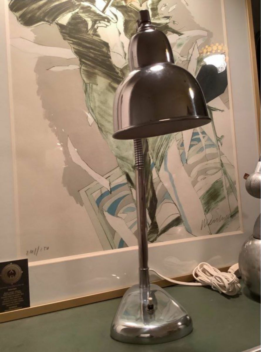 Jolie lampe articulée et chromée entièrement d’origine et en parfait état de fonctionnement. Très belles pièces en très bon état pour une lampe de près de 70 ans ! Elle a bien sûr quelques traces d’usure du temps et une patine qui lui confère tout son intérêt.