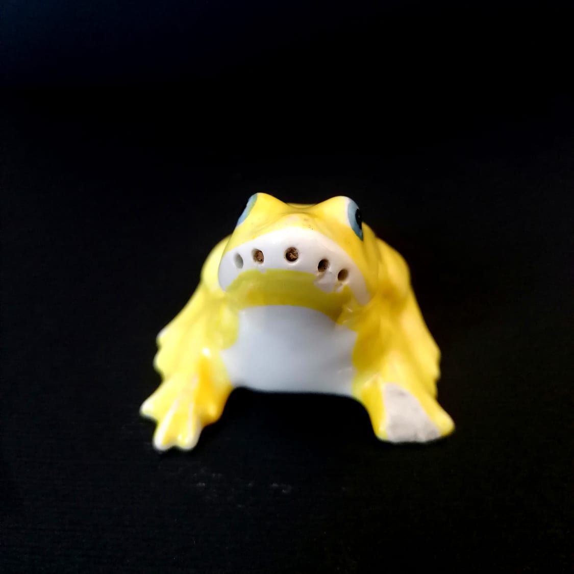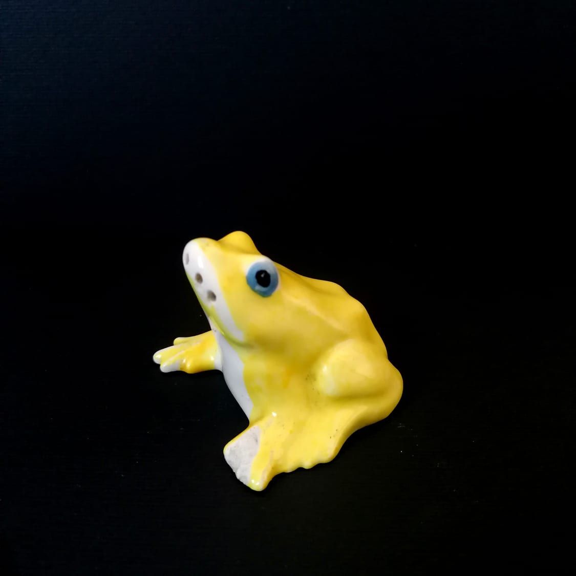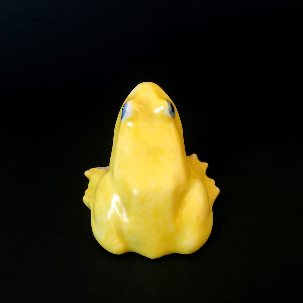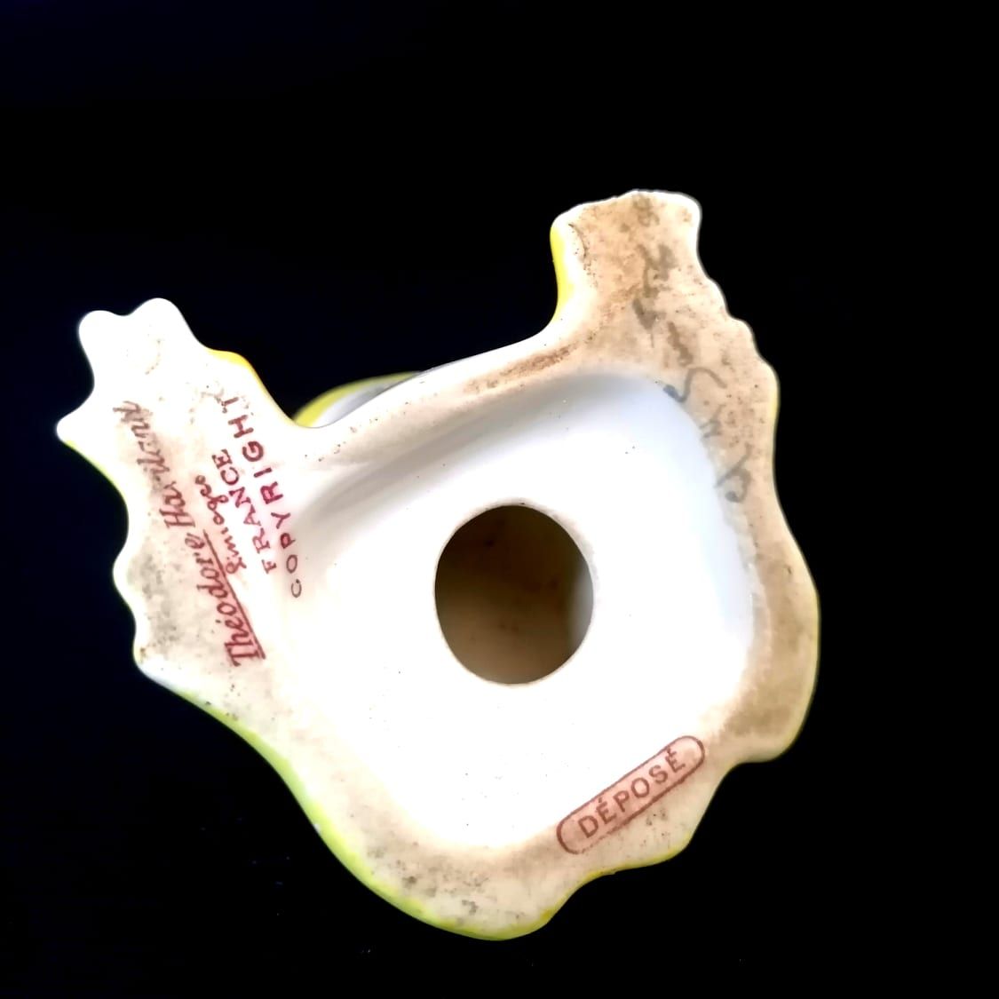 Porcelaine émaillée jaune , les yeux bleu et noir signée E.M Sandoz en bleu au revers et estampillée en rouge Théodore Haviland Limoges France copyright.