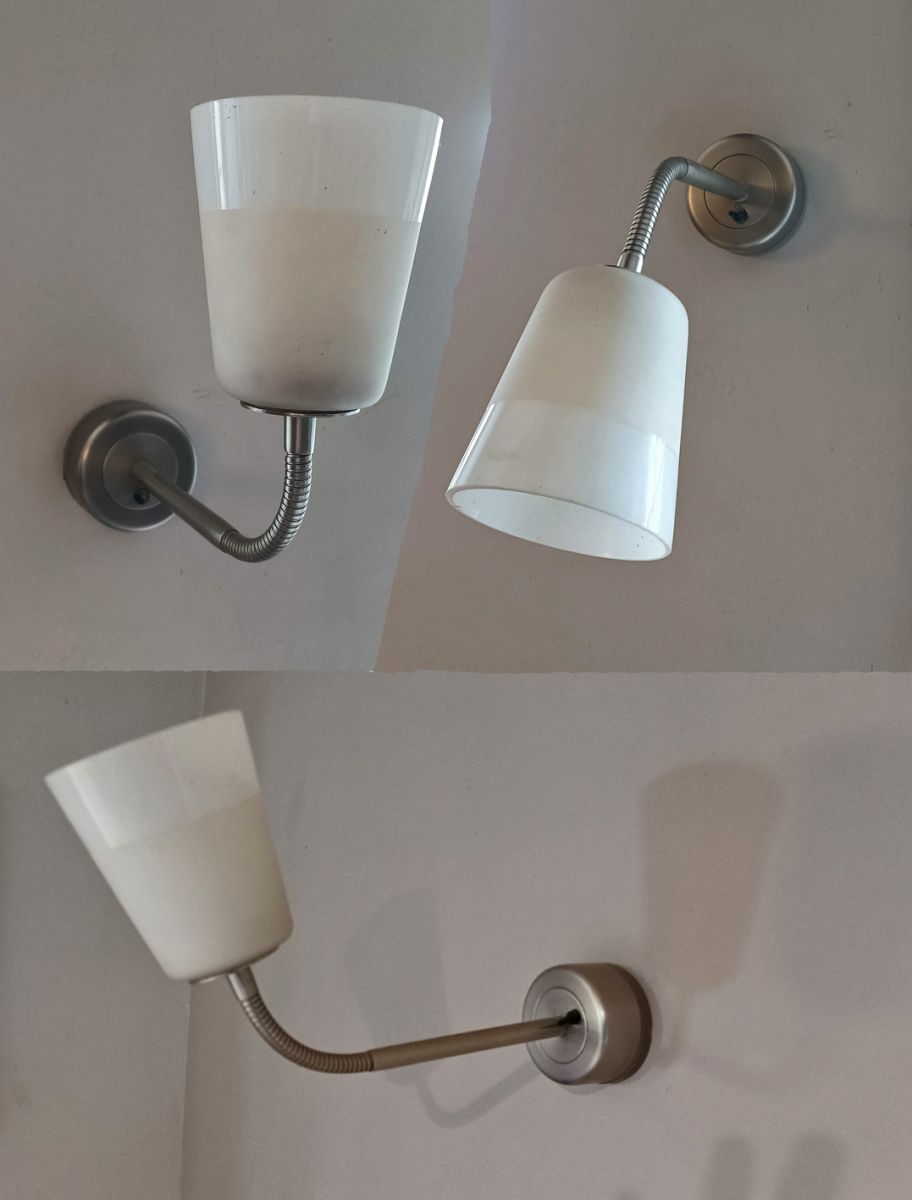 Vends une paire d"appliques en verre et metal. Marque IKEA, années 90. Bon état. Flexible et interrupteur. Prévoir changer ampoules.