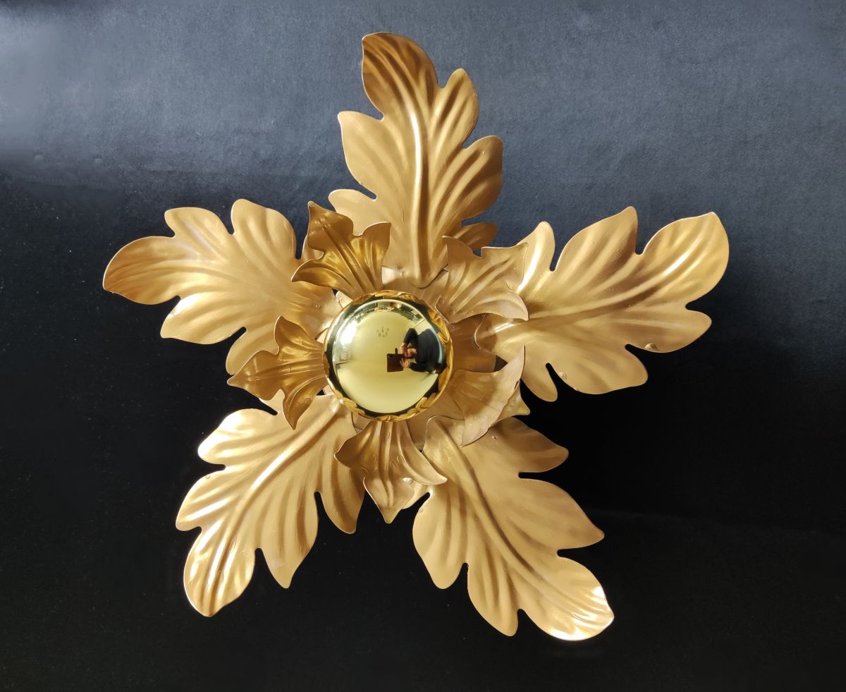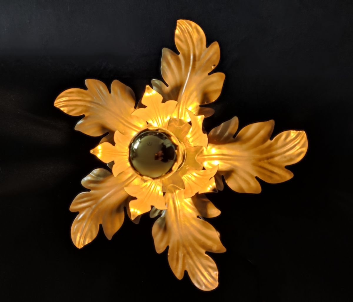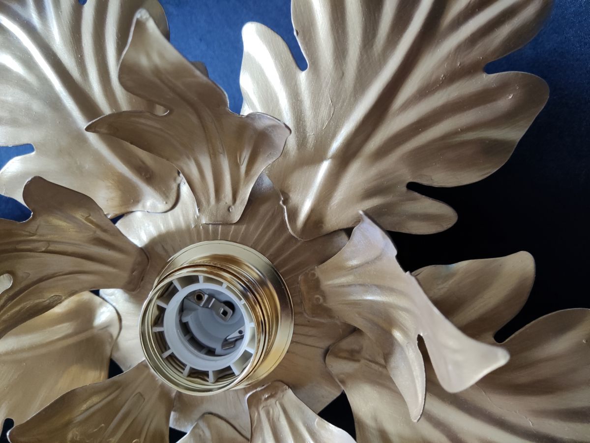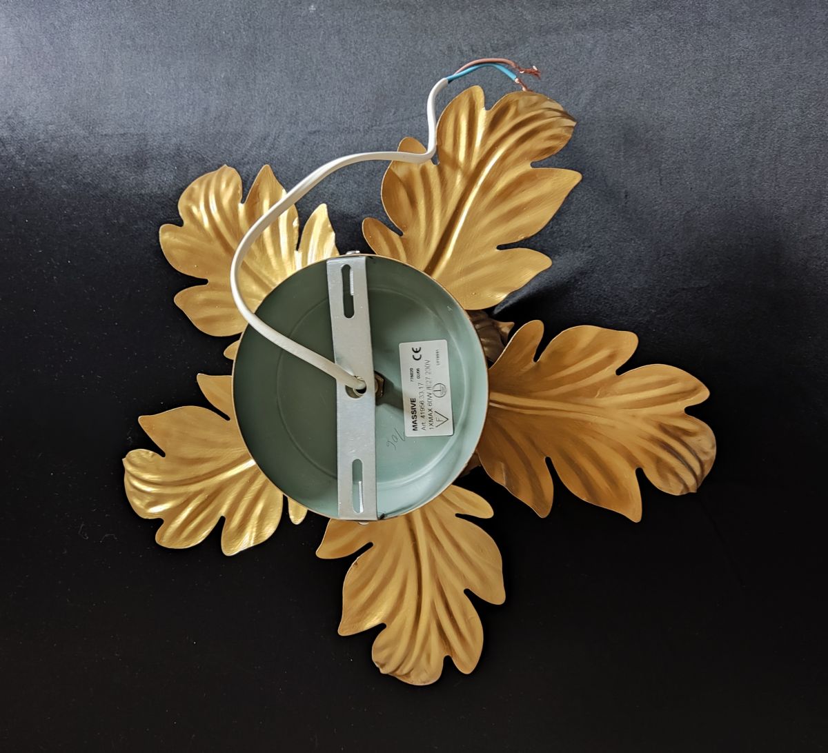applique murale 5 feuilles avec 2 corolles en métal doré vintage