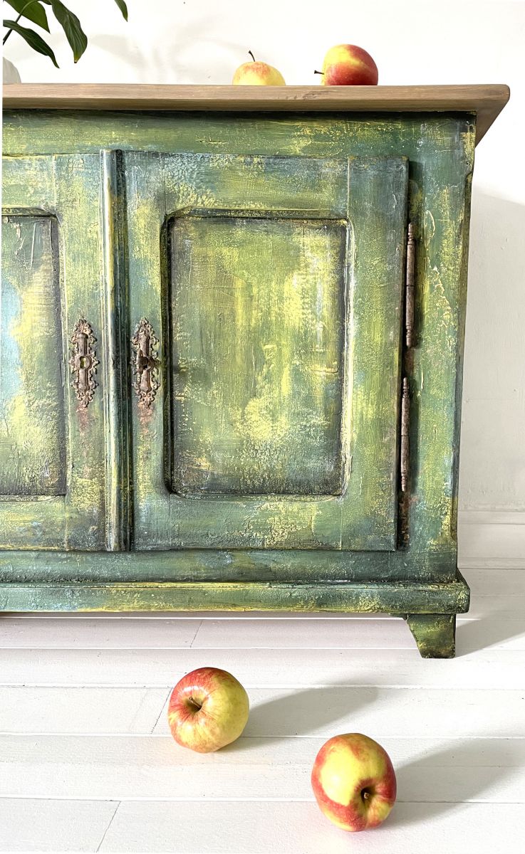 Une commode dans une gamme de peintures à la craie et texturé à l'aide de Saltwash pour créer une belle patine.