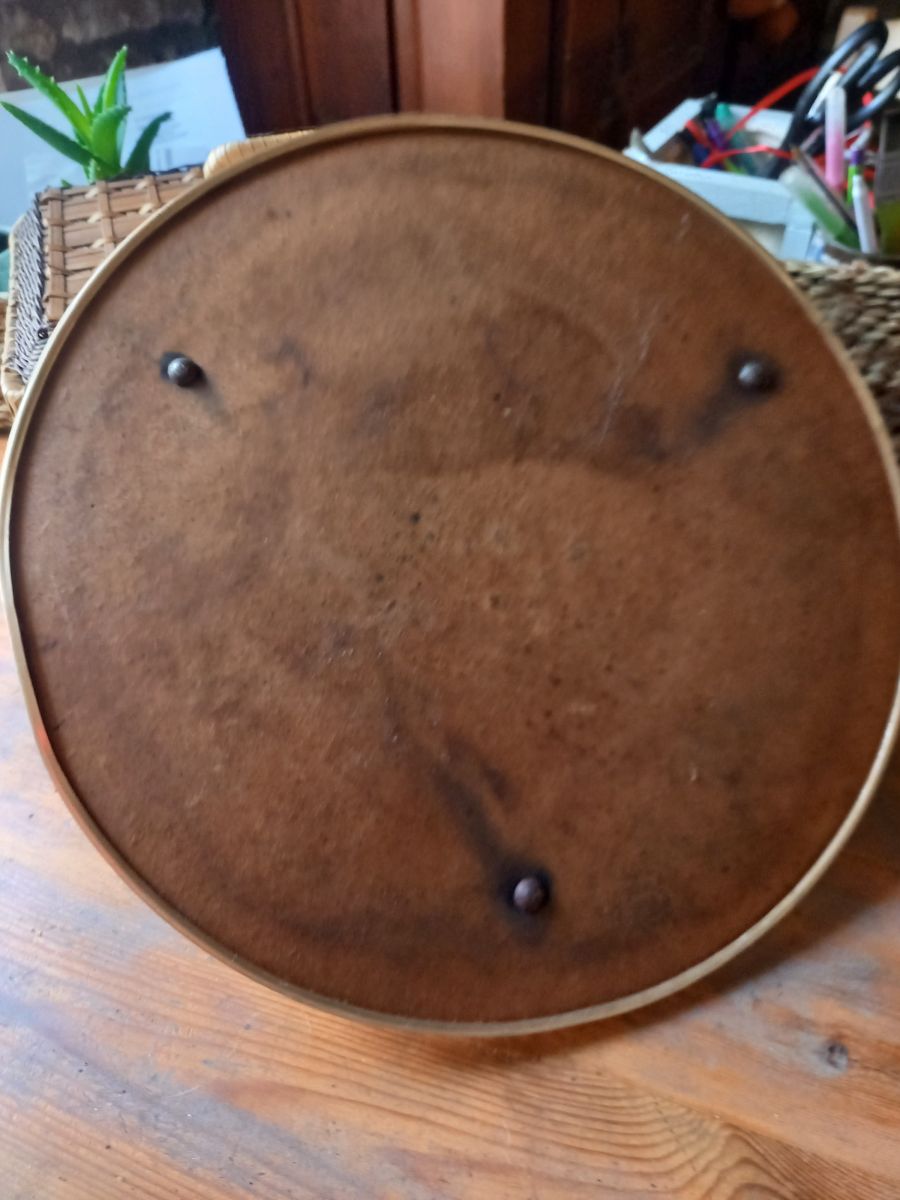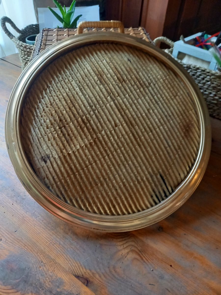 Cadre rond en laiton dos en bois, fond en carton ondulé