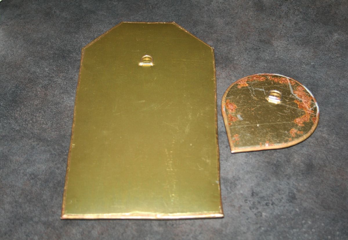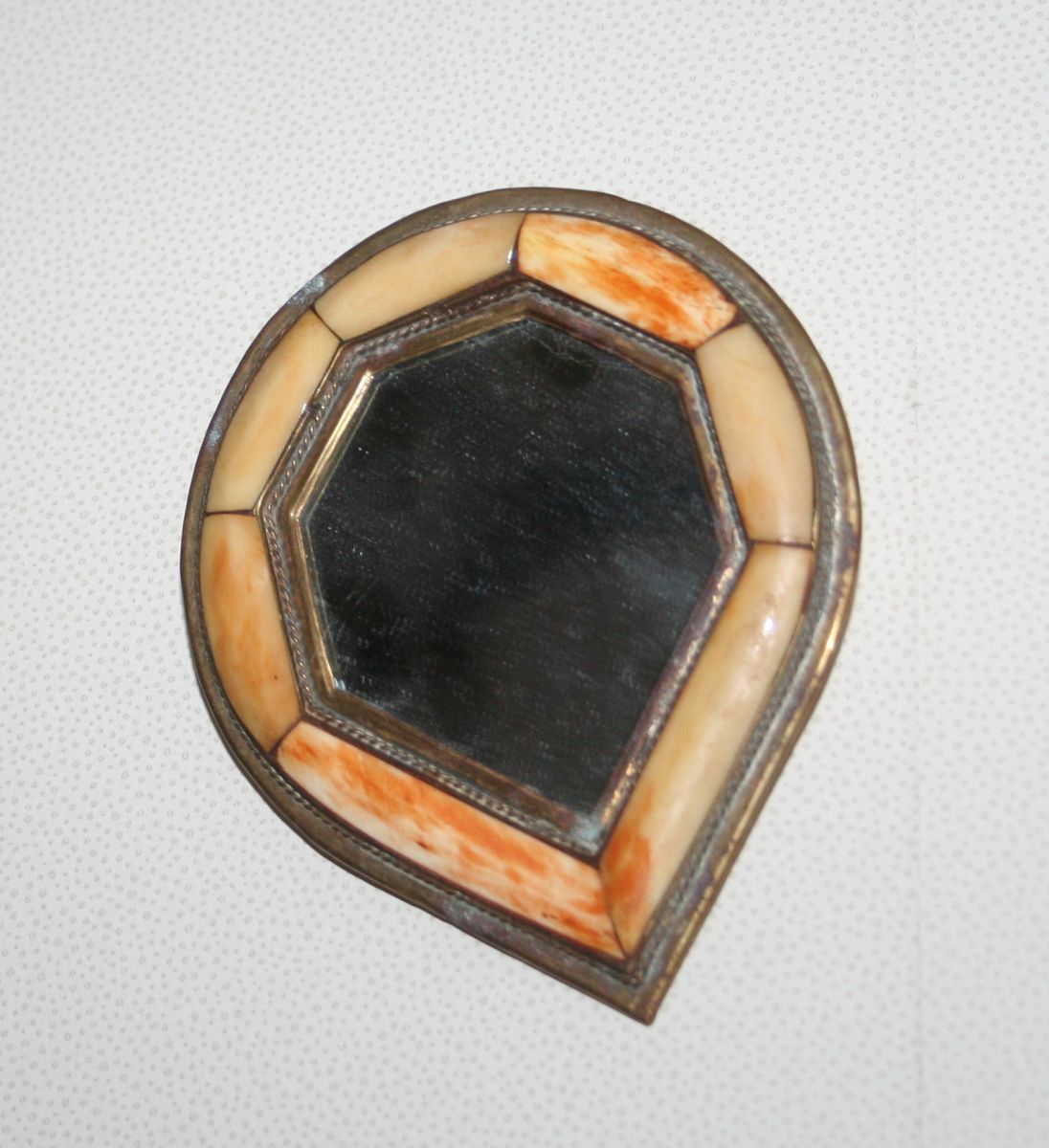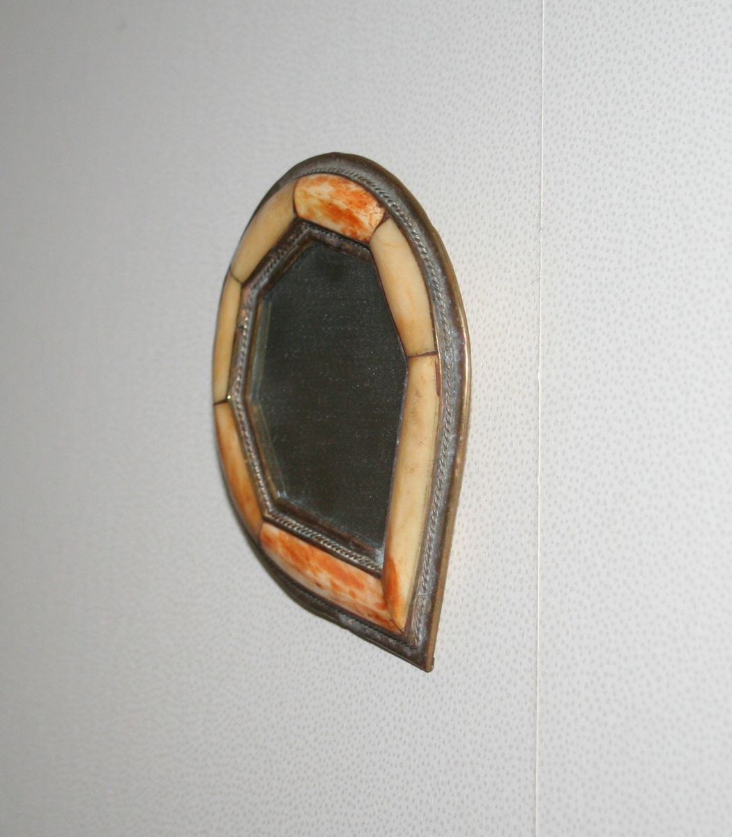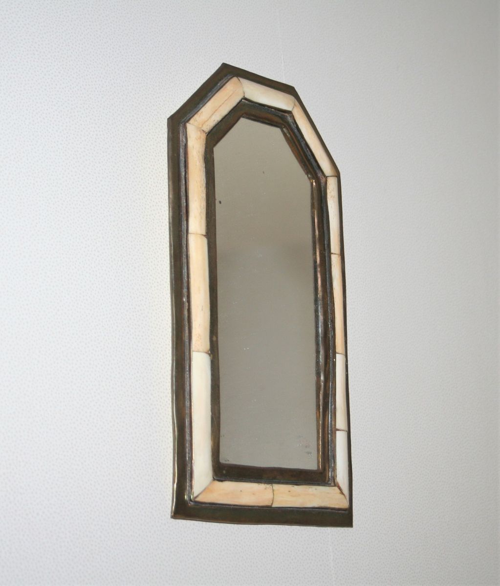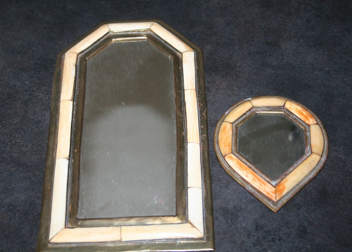 Original et atypique lot de 2 miroirs orientaux vintage fait d'os (chameau), de cuivre et de laiton.