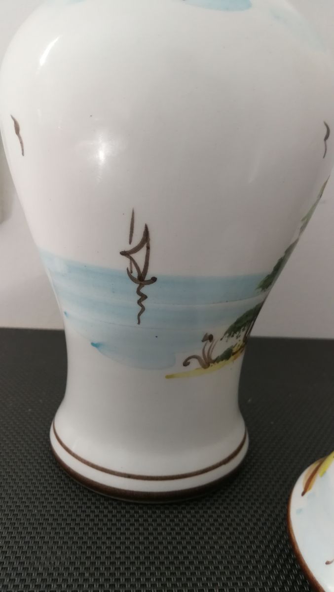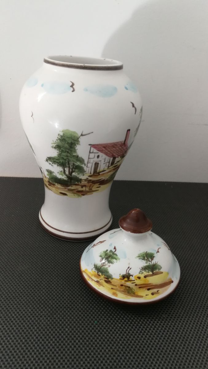 Petit Pot avec couvercle en céramique F. A. L. CAPUCHOS ALCOBAÇA.
