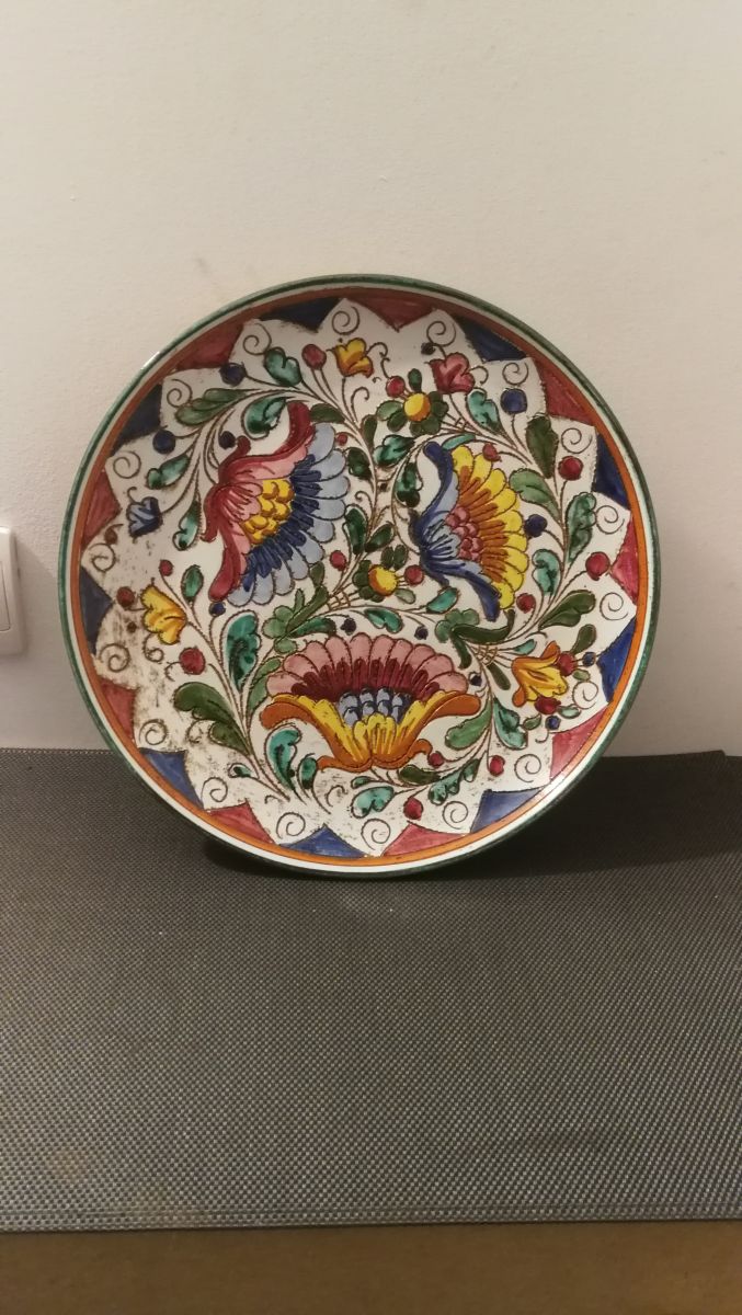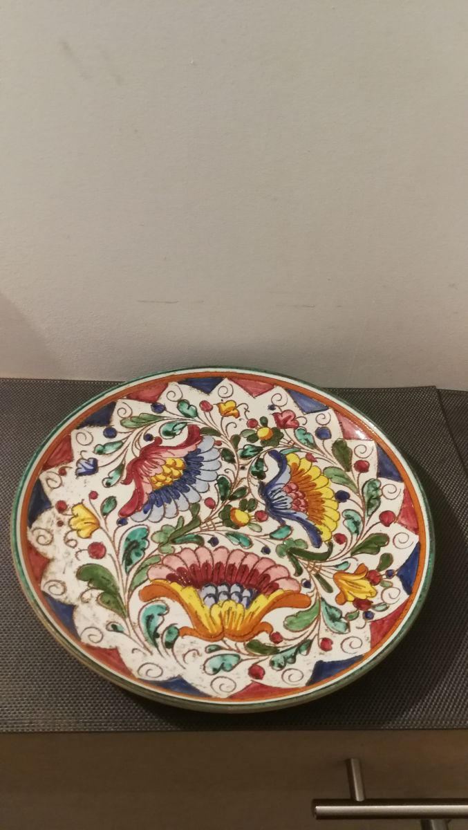 Jolie Assiette à fleur multicolore décoratif fait à la main, made in Italy.