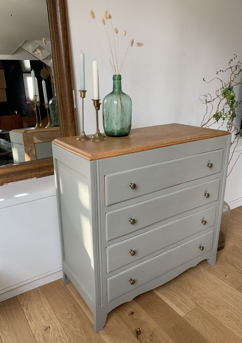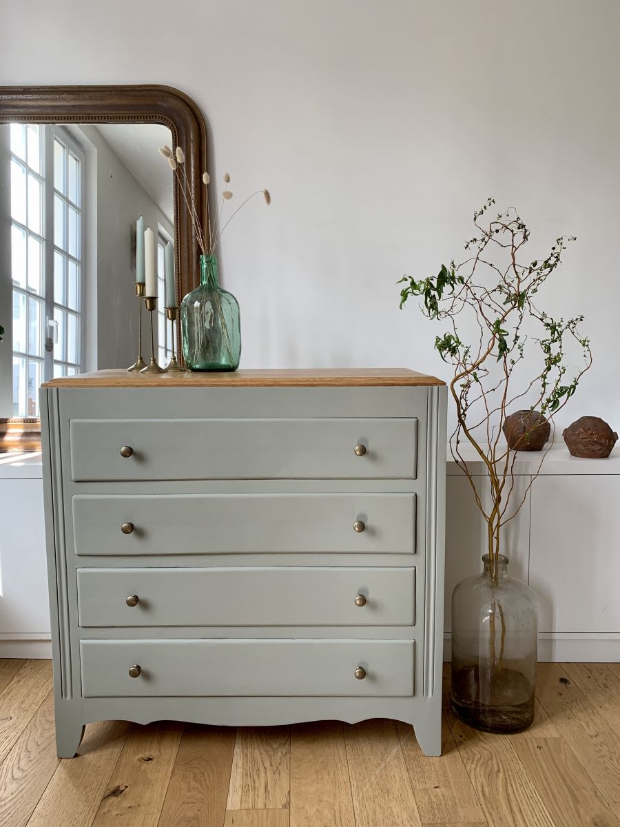 Elle a été mise en beauté avec la douce nuance "Gris chaud" de chez Ressource.