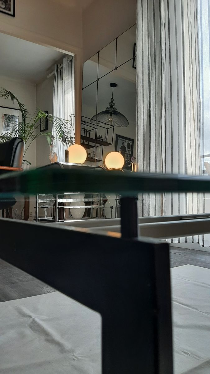 Table basse métal et verre fumé très desing