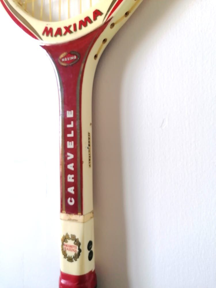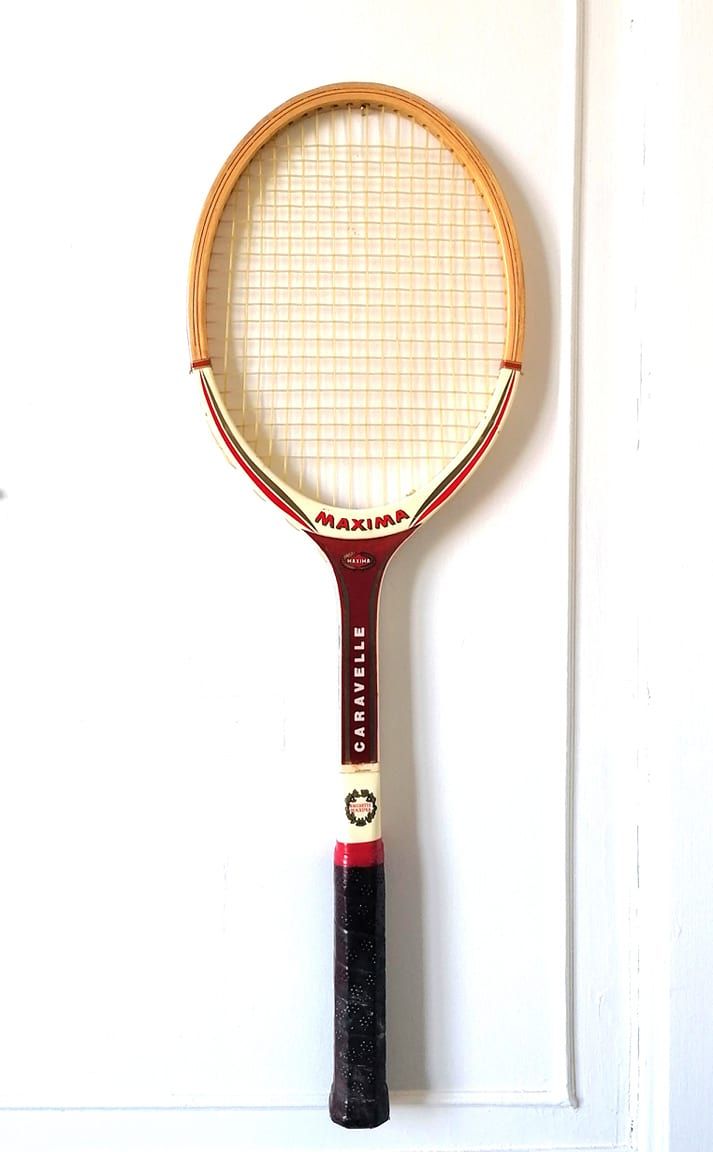 Raquette vintage en bois de la marque italienne Maxima , modèle Caravelle .