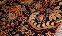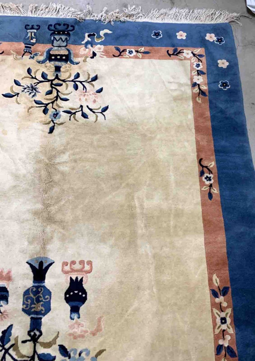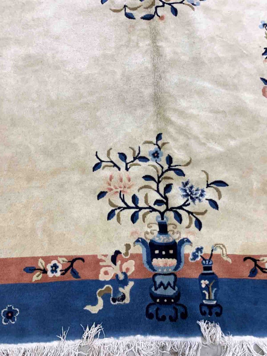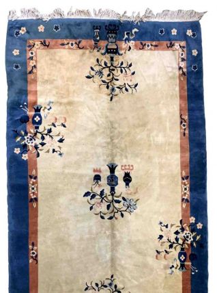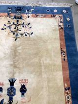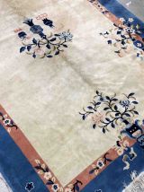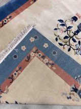 Handmade vintage Art Deco Chinese rug in beige and blue shades. The rug is from the beginning of 20th century in original good condition.