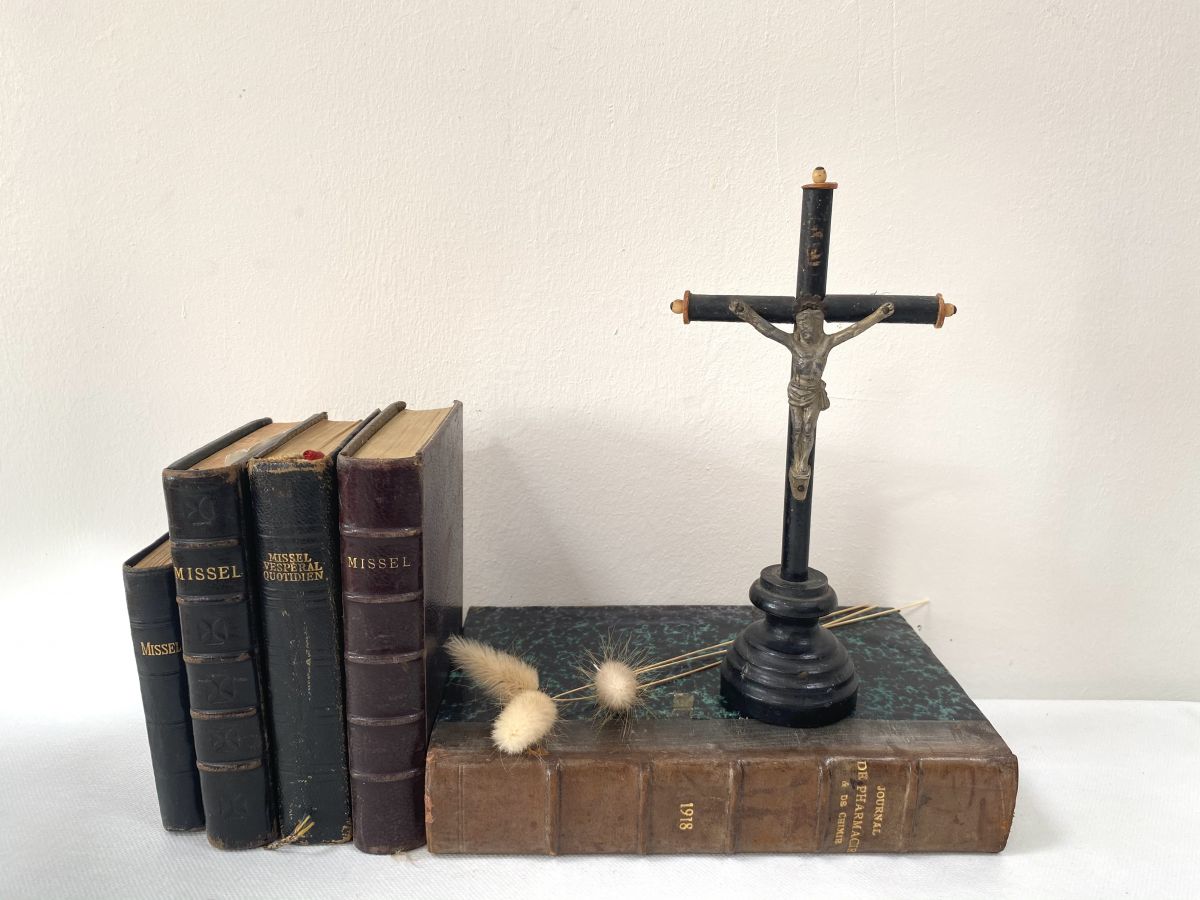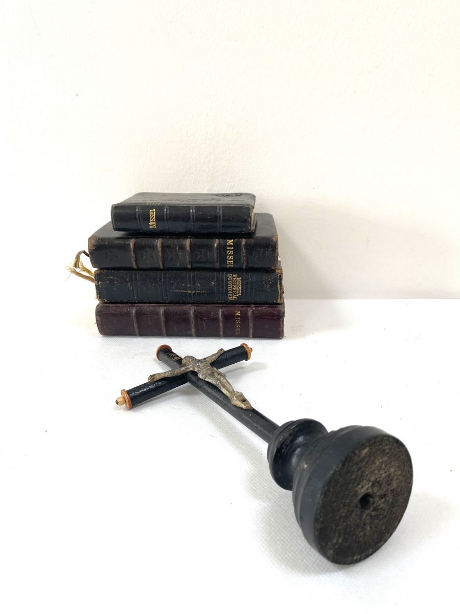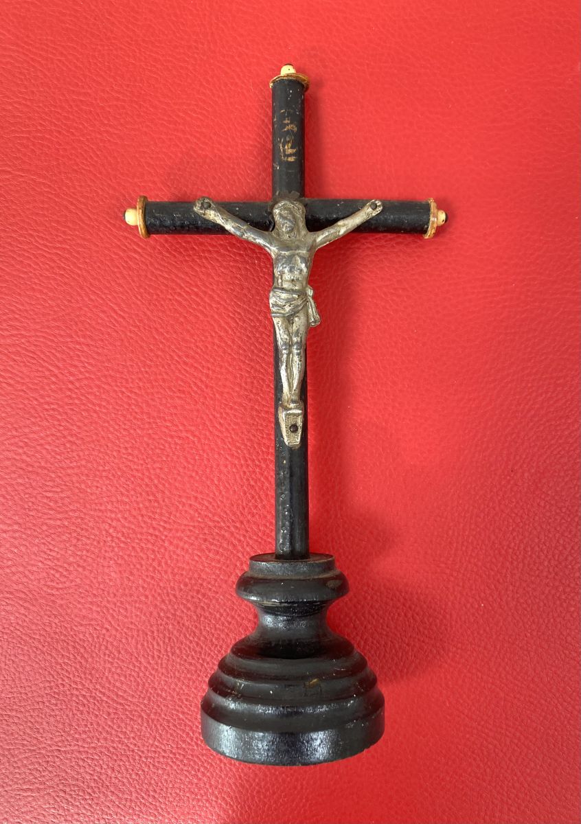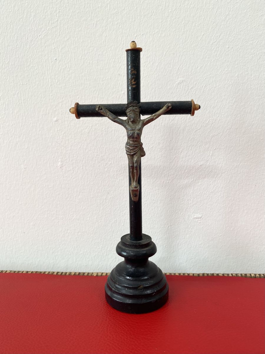 Beaucoup de charme vintage pour cet ancien crucifix en bois noir agrémenté de 3 perles.