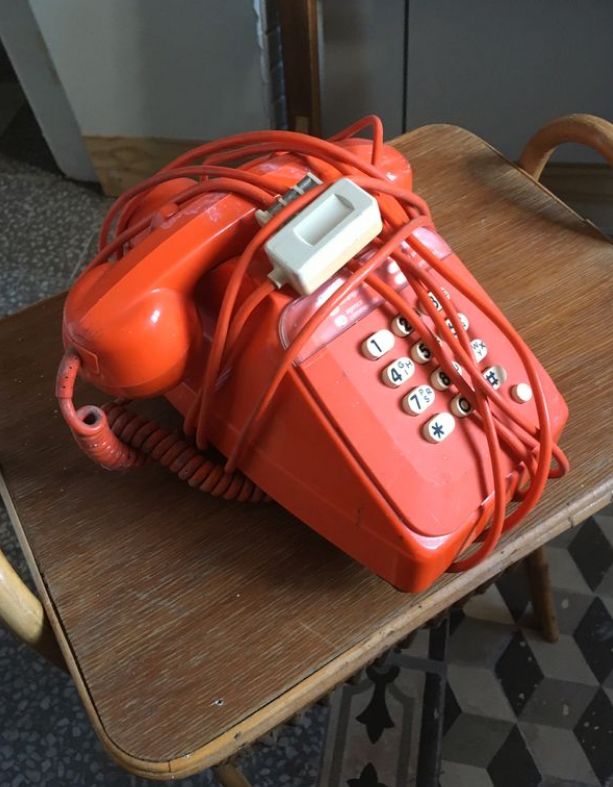 Mythique téléphone orange des années 70/80! C'est le socotel s63 - téléphone à touches avec son écouteur et un interrupteur qui permet de couper le microphone du combiné